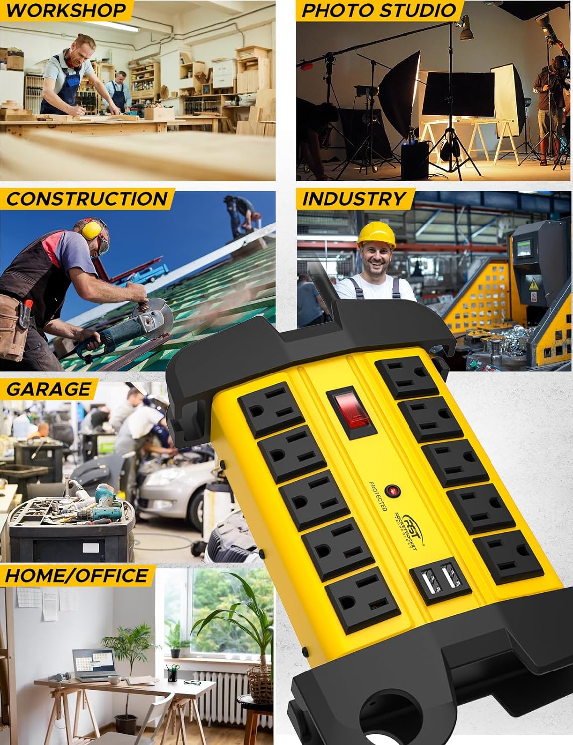 - [Superior Safety Protections] Safeguard your devices with this heavy-duty power strip's robust 2800 Joules of surge protection, 15A overload protection, and EMI/RFI filtering. It shields against voltage fluctuations, short circuits, and interference, ensuring reliable performance.