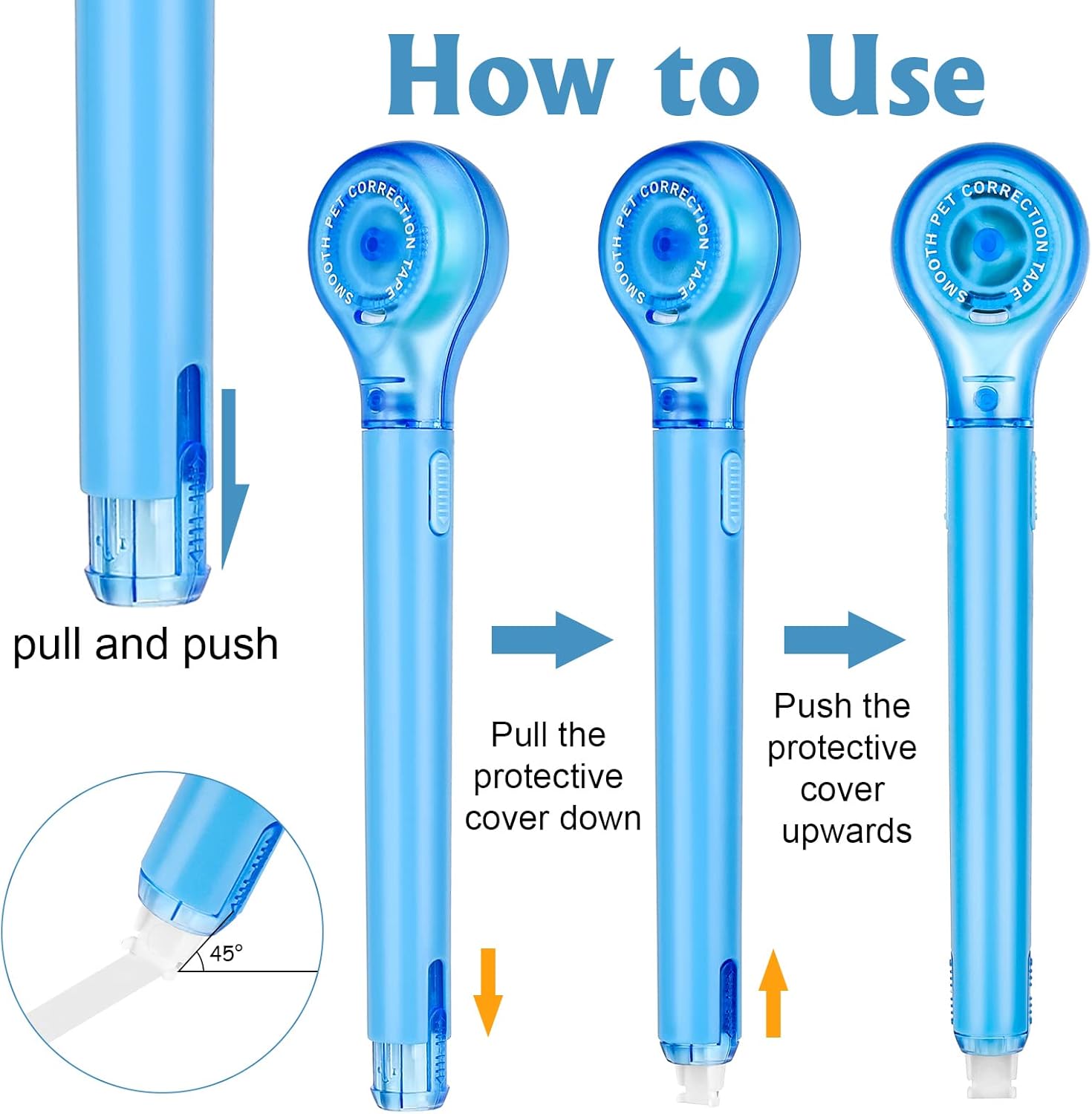 - Retractable Protective Cover: The head of our cute correction pen features an retractable protective cover that you can push up to display the tape and pull out to protect it from damage (Caution for use: use evenly under force)