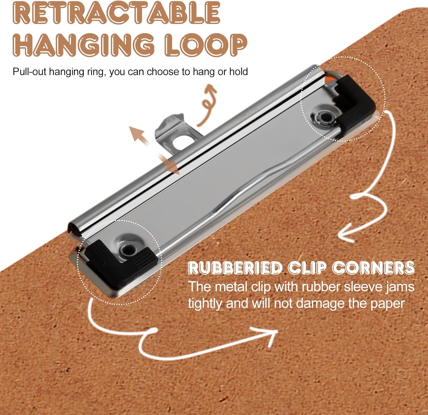- âś…RETRACTABLE HANGING LOOP: The clipboards have a built-in hanging hole, which can help you place your documents randomly. And it can be stowed away when not needed