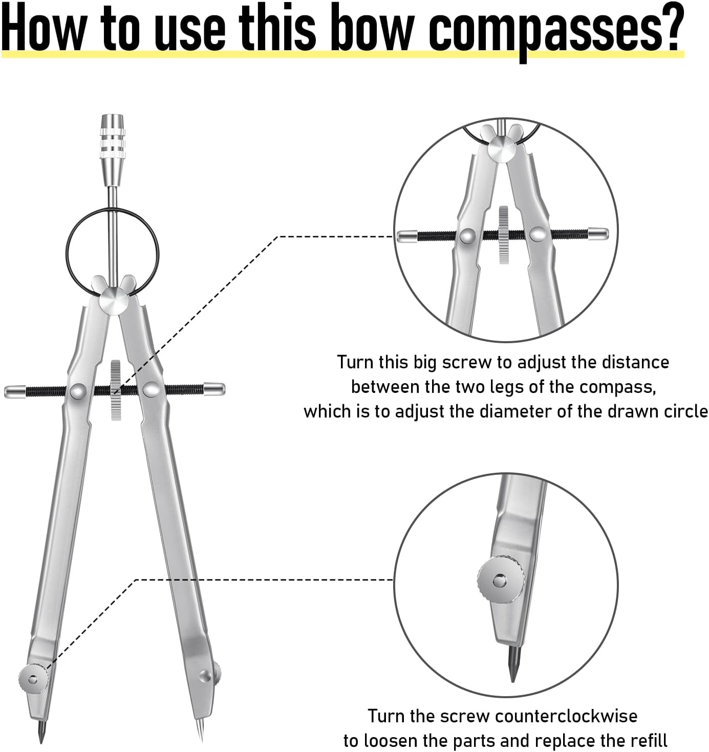 - Warm notice: if you receive the product and found the screw of compass is loose, do not worry, it is not a quality problem; The loose screw makes it easier for you to turn the pencil down; You can tighten the screw after using pencil replace divider part