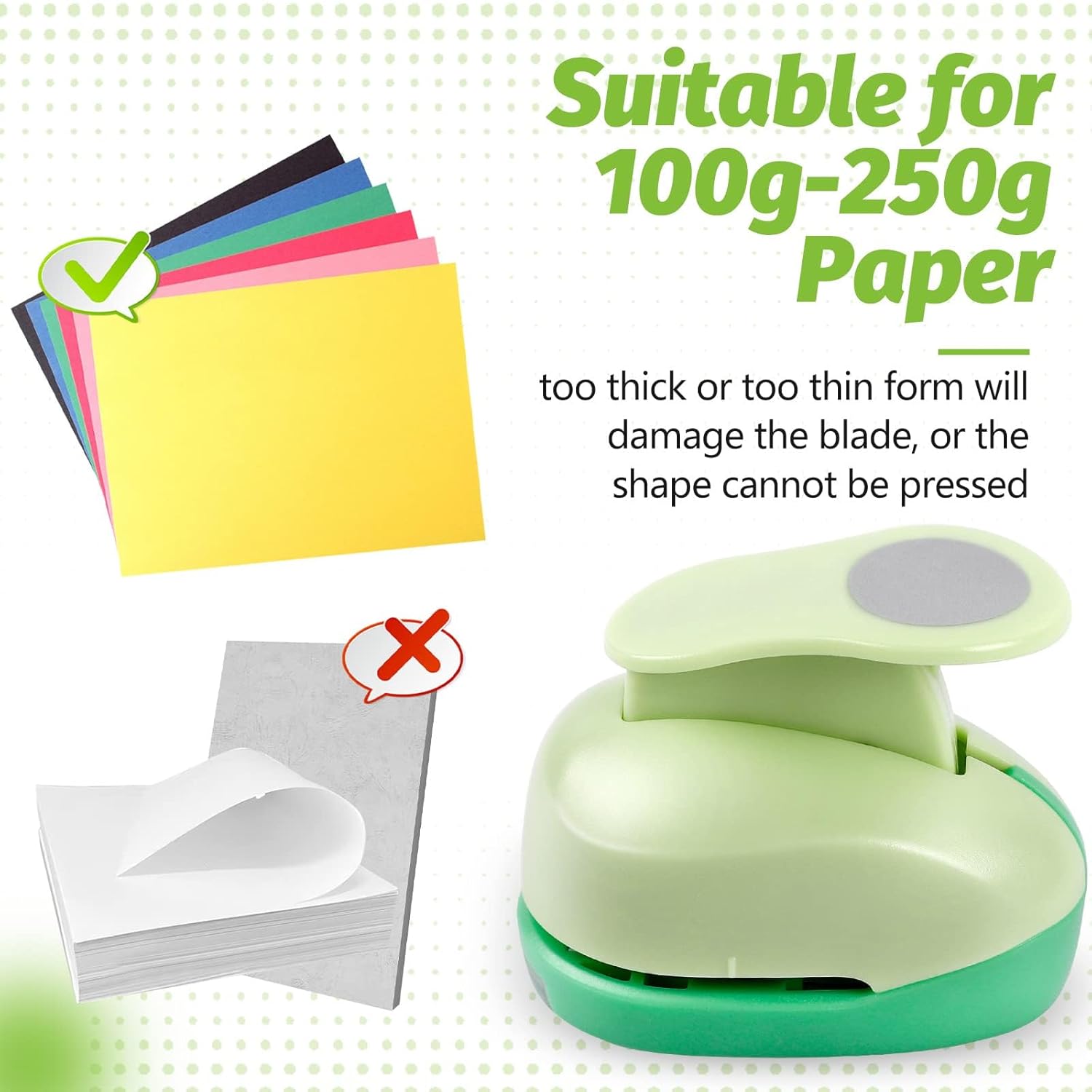- Wide Applications : Paper pPostcards, holes, squares, cards, back holes, inches, circles, art, tarot cards, tissue paper, hole punch, paper, sheets, cardsunch for crafting is simple to use and will make perfectly shaped designs from card-stock, paper, cardboard, felt, foam, etc. If your paper is too thin, please use 2-3 layers. Cutting Sticky paper may make the paper punch GET STUCK, suitable for 120g-250g paper