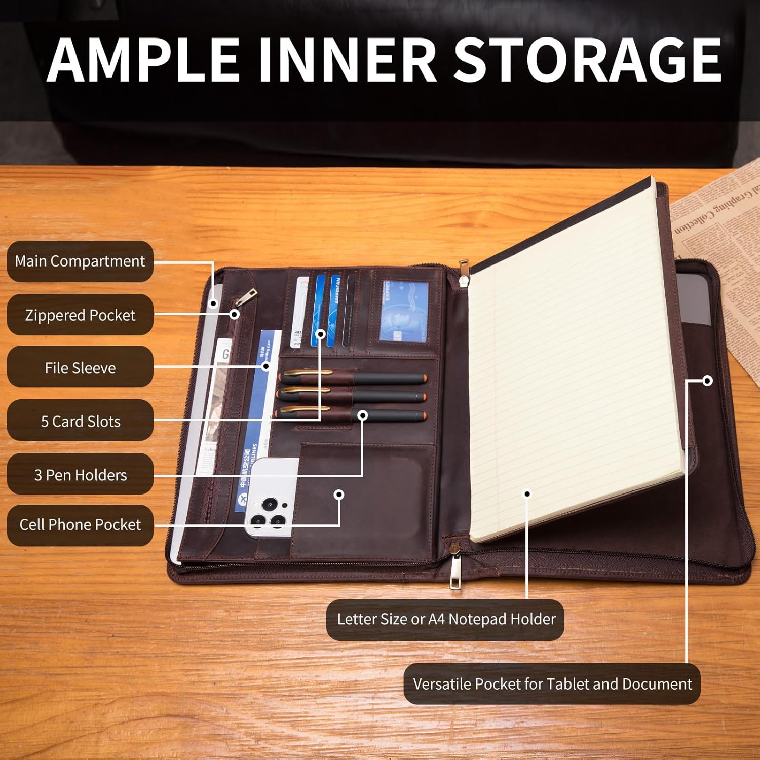 - Hidden Handle and Exterior Pocket: Effortlessly carry the portfolio with one hand, eliminating the need for additional bags or straps. Particularly beneficial for professionals on the go. With the exterior pocket, you can quickly retrieve or store essentials without having to open the inner pocket, saving time and ensuring efficient organization.