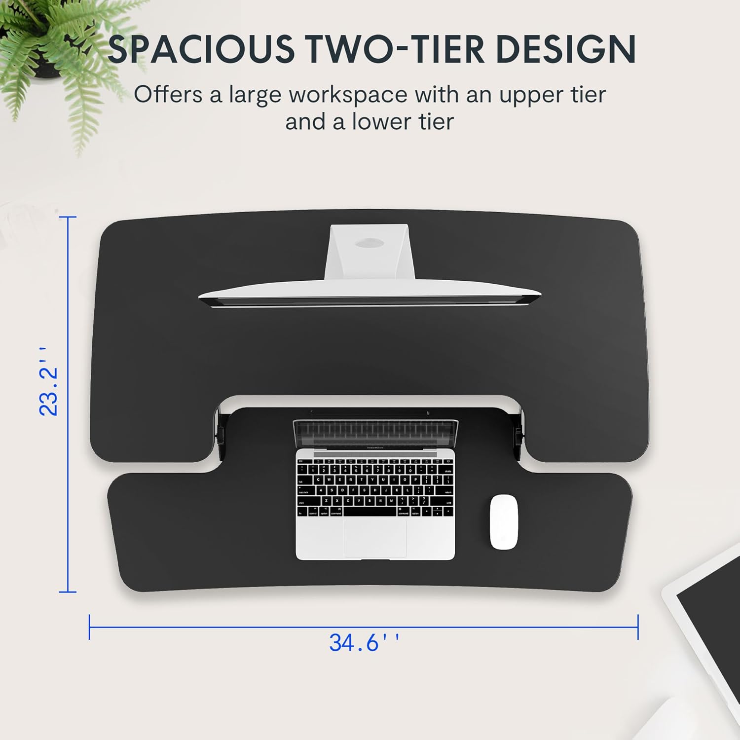 FLEXISPOT 35in Standing Desk Converter Height Adjustable Sit to Stand up Desk Riser Computer Workstation with Keyboard Tray Wide 2-Tier Desktop Black