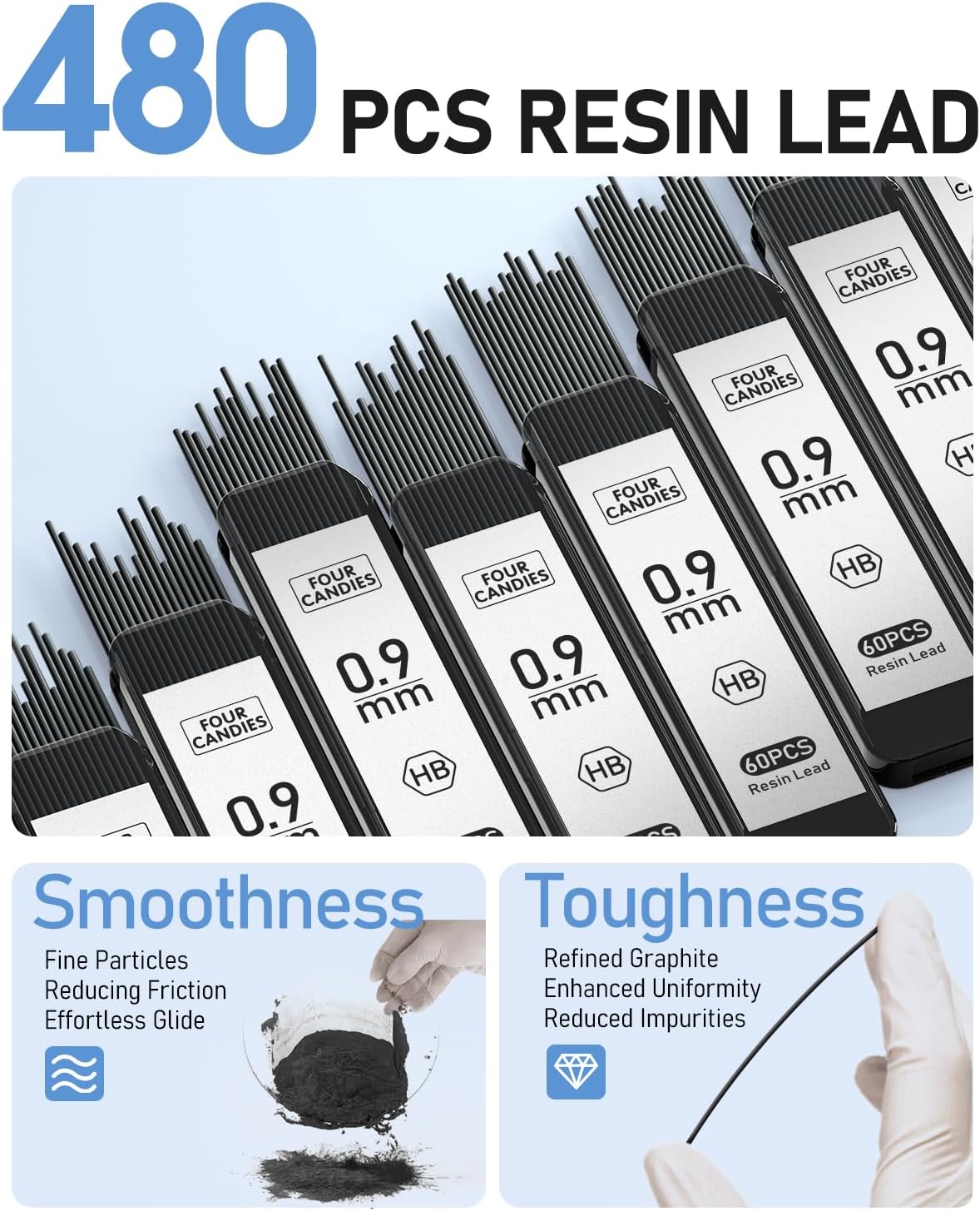 - 0.9mm Strong Leads: 8 tubes of 60pcs super capacity leads; A more durable resin lead which doesn’t require sharpening and is not easy to break, provides ultra-smooth writing and clear dark lines