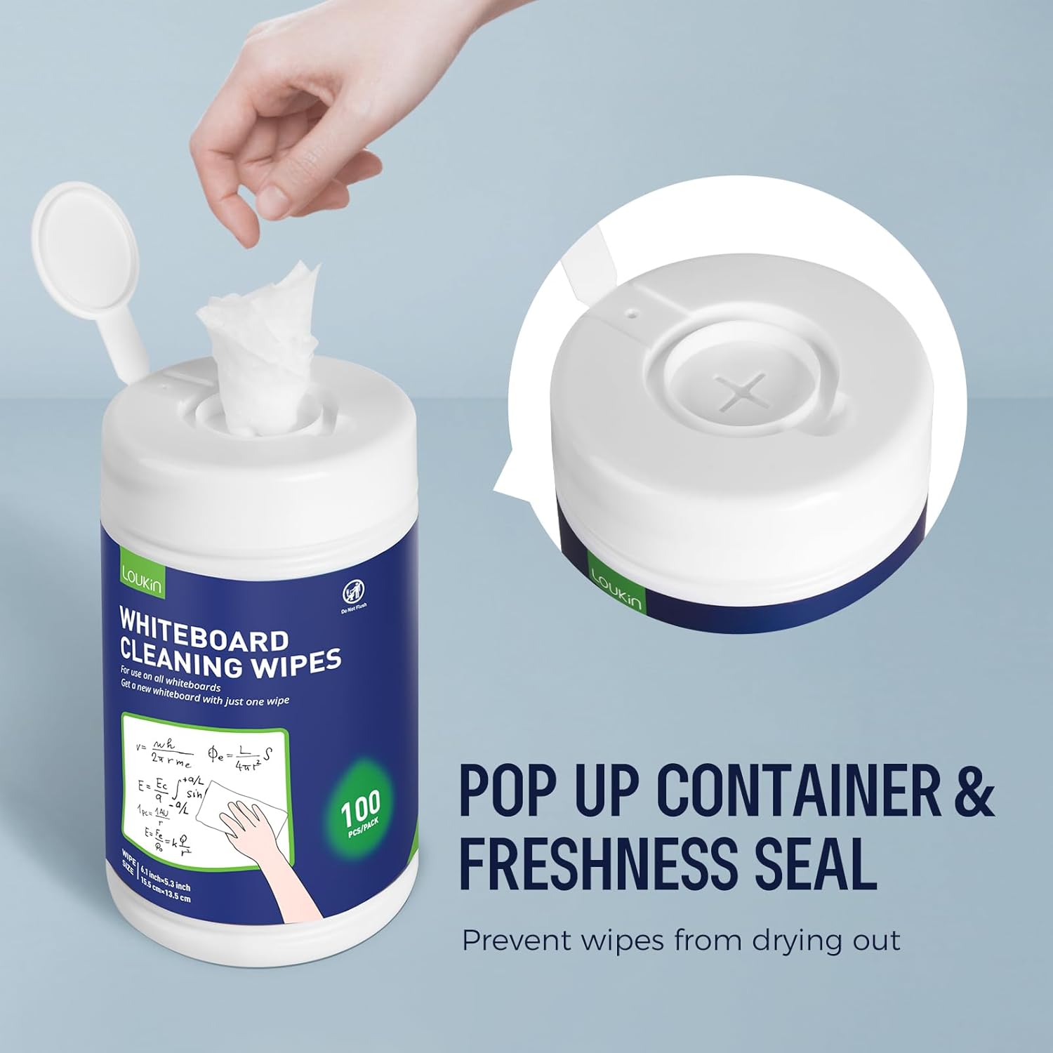 Loukin Whiteboard Cleaning Wipes, Dry Erase Board Cleaning Wipes, Non-toxic White board Wipes, 100 Wipes per Canister