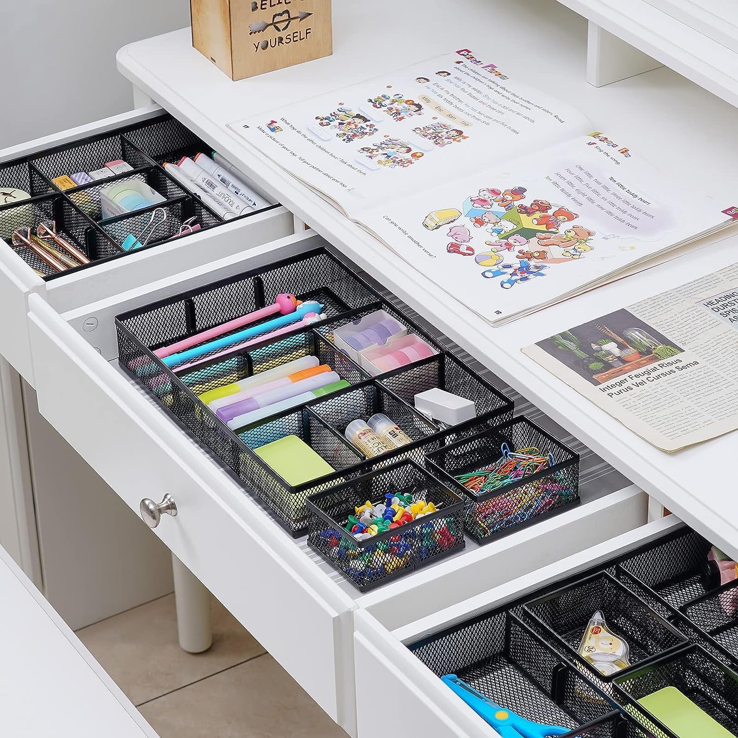 - ăStury and DurableăMade of sturdy black wire mesh structure with powder coated surface, smooth and corrosion-resistant. Non-slip feet can keep the product stable.Big Drawerďź12*8.3*2.2inchesďź2PC Small Drawersďź3.5*3*1.9inches
