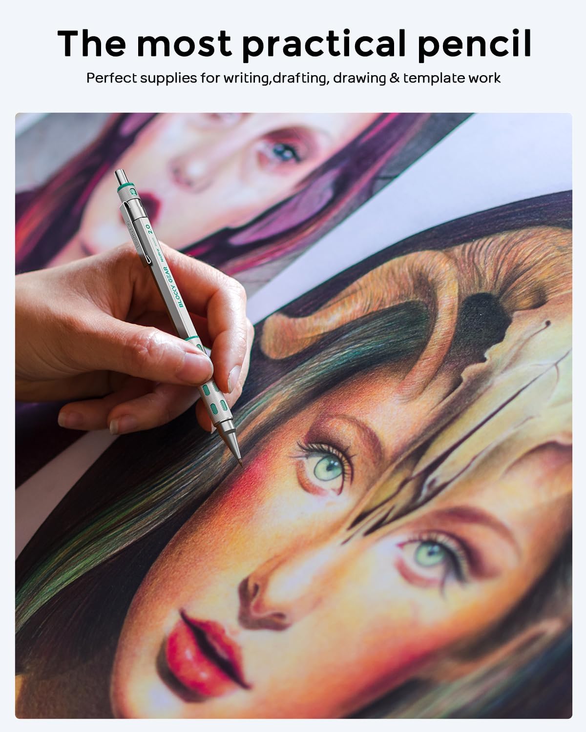 - Nicpro Blocky Gear:Come with a metal 2mm mechanical pencil and 6 tube of 2.0 mm lead refills in different hardness(HB 2B 2H 4B 4H & Colors),1pcs 4B latex-free eraser,9pcs replaceable cap erasers,all the stuff storage neatly in a case with flocking tray,what a gift for friends & family!