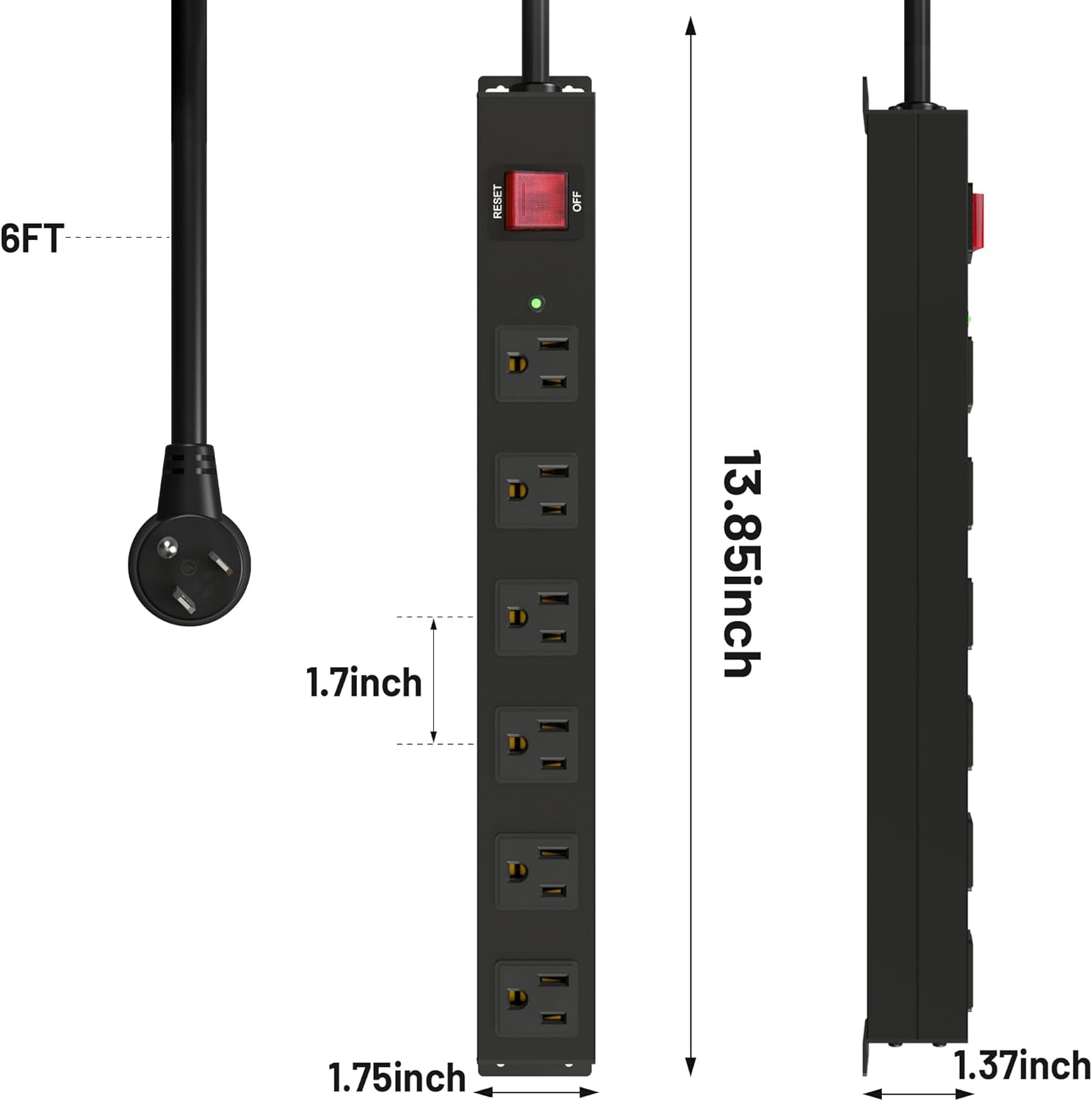 - Heavy Duty Power Strip: Crafted from durable metal, this heavy-duty power strip ensures longevity and safety, providing a reliable power source for all your devices.With 6 outlets and 1.7-inch wide spaced, the perfect solution ideal for larger adapter plugs used in spaces.