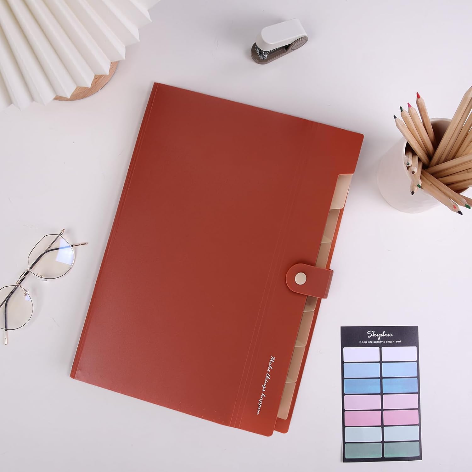 SKYDUE File Folder with Labels, Accordion File Organizer with 8 Pockets, Portable Document Organizer, A4 Letter Size, Paper Organizer for Office, Brown