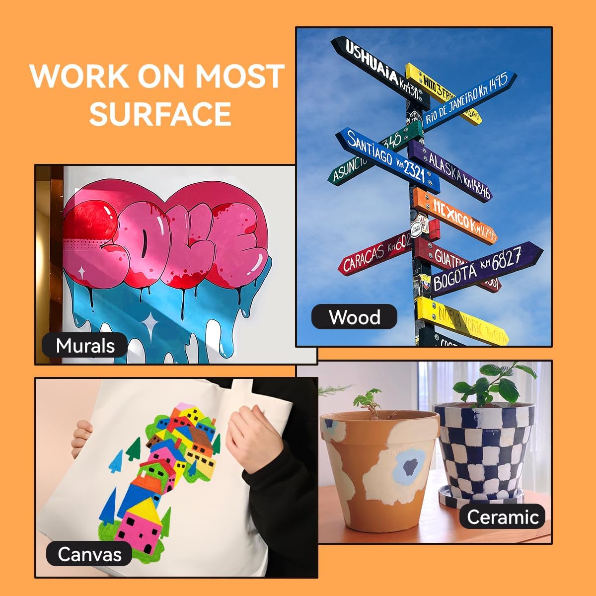 - [Water-based Ink,Odourless and non-toxic] - Our acrylic paint markers are water-based, so colors won't smudge or fade , dry quickly and permanent you can enjoy your masterpiece for years to come. With high quality certificated ink, odourless and non-toxic makes these painting pens safe and suitable for both and adults for all kinds of DIY paintings, such as halloween decorations.