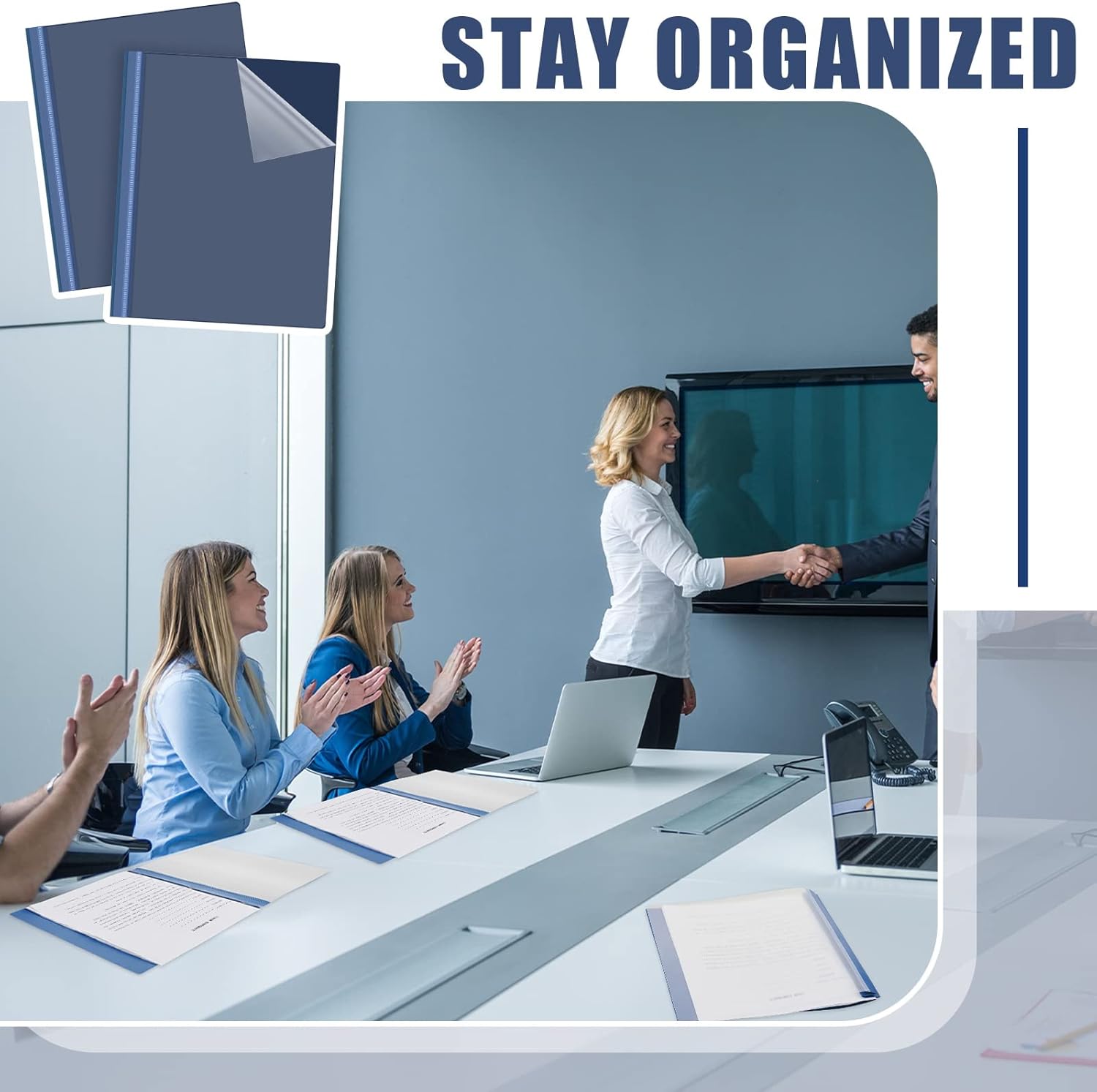 - Quality Material: The front of plastic presentation folders are made of clear pp plastic, the back and side are navy blue pp plastic, reliable and quality, the transparent front page gives you a clear view of the contents of the folder without having to leaf through, convenient and easy, the report covers will keep your important documents and papers safe