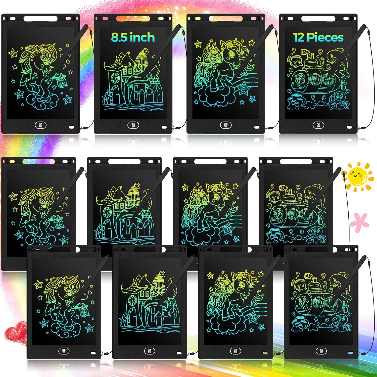 Tinlade 12 Pack LCD Writing Drawing Tablets 8.5 Inch Bulk Colorful Doodle Board Erasable Electronic Painting Drawing Pads Learning Toy Gifts for Kids Christmas School(Black)