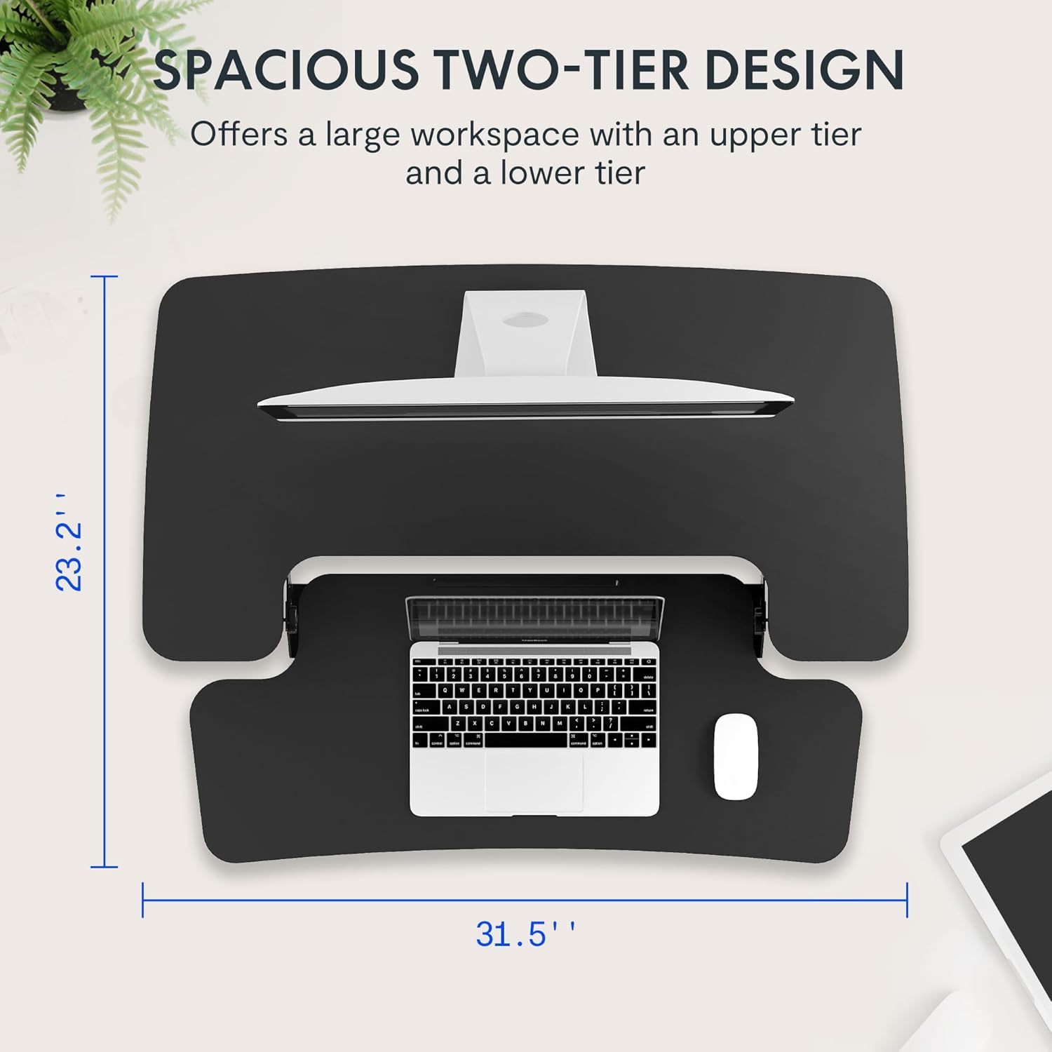 FLEXISPOT Height Adjustable 32in Standing Desk Converter Sit to Stand up Desk Riser Computer Workstation with Wide Keyboard Tray 2-Tier Desktop Black (32'', Black)