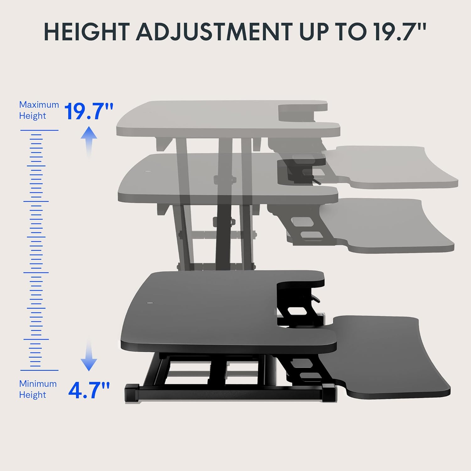 - Easy to Install - Each ergonomic sit-stand desk comes with step-by-step instructions and is ready to use in minutes. Install the removable keyboard tray and snap on the handle, without any additional steps, then you can enjoy a sitting or standing workstation at the same time.