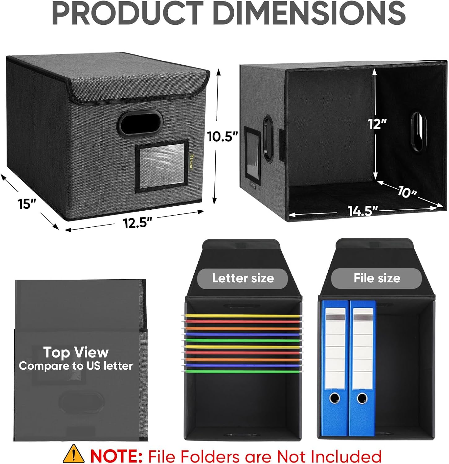 - [OPTIMIZED DESIGN] Designed with convenience in mind, our file storage box helps to elevate your efficiency and organization. The transparent label slot allows for quick identification of the contents stored inside the box. The collapsible design and sturdy handles ensure effortless storage and movement, making it convenient and easy to use.