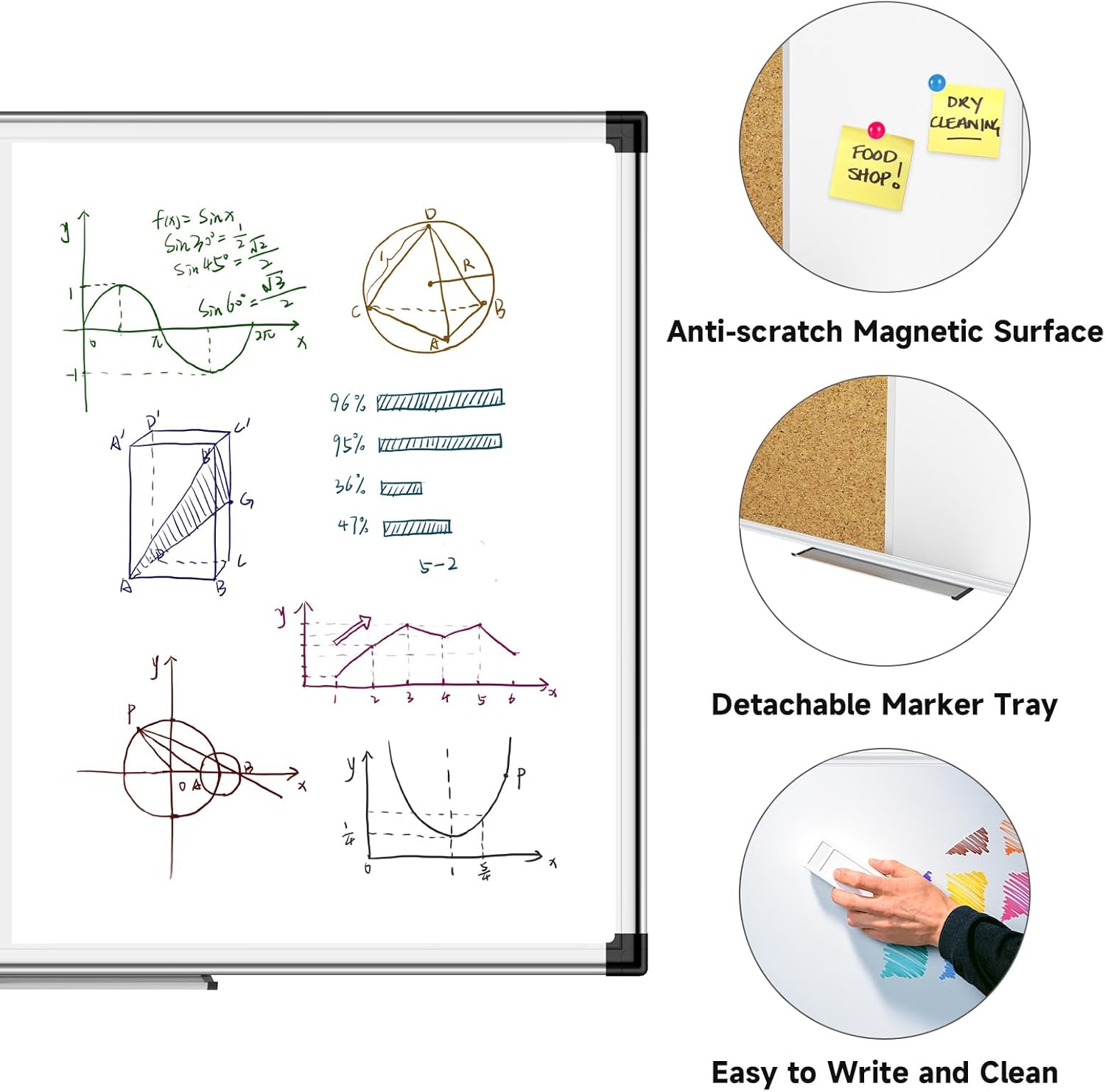 - Smooth Writing & Easy to Wipe - Specially lacquered offering a spacious and smooth magnetic writing surface that enhances your writing experience without staining, ghosting or discoloration.