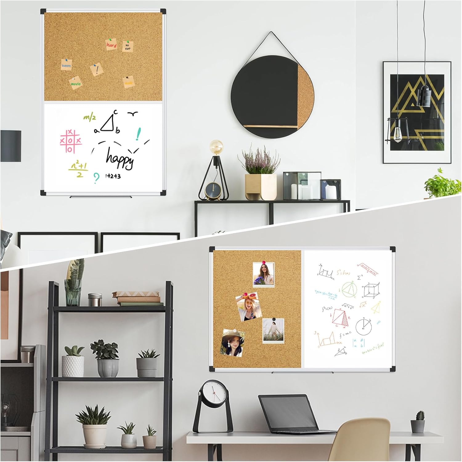 XBoard Large Magnetic White Board and Bulletin Corkboard Combination, 48 x 36 Inch Half Dry Erase & Cork Combo Board for Wall with Aluminum Frame, 4' x 3' Notice Memo Board Pin Board Vision Board