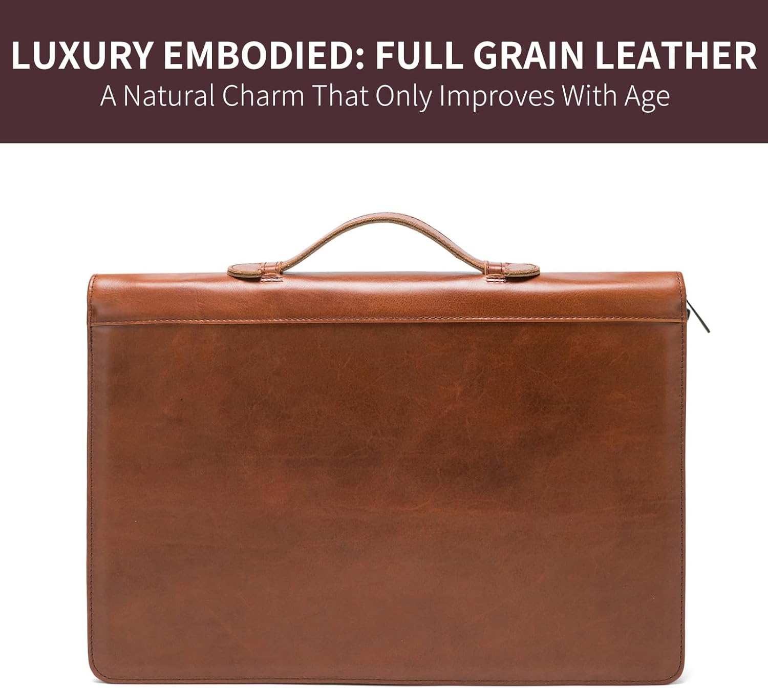 - Multi-Function 15" Laptop Portfolio: Feature a dedicated double-layer pocket tailored to securely hold a 15" laptop. Within this specialized pocket, you'll find a large file sleeve, ideal for organizing important documents, while an inside YKK zipper pocket keeps smaller essentials safe and accessible. Furthermore, a medium open slot within the same pocket adds versatility, accommodating various items.