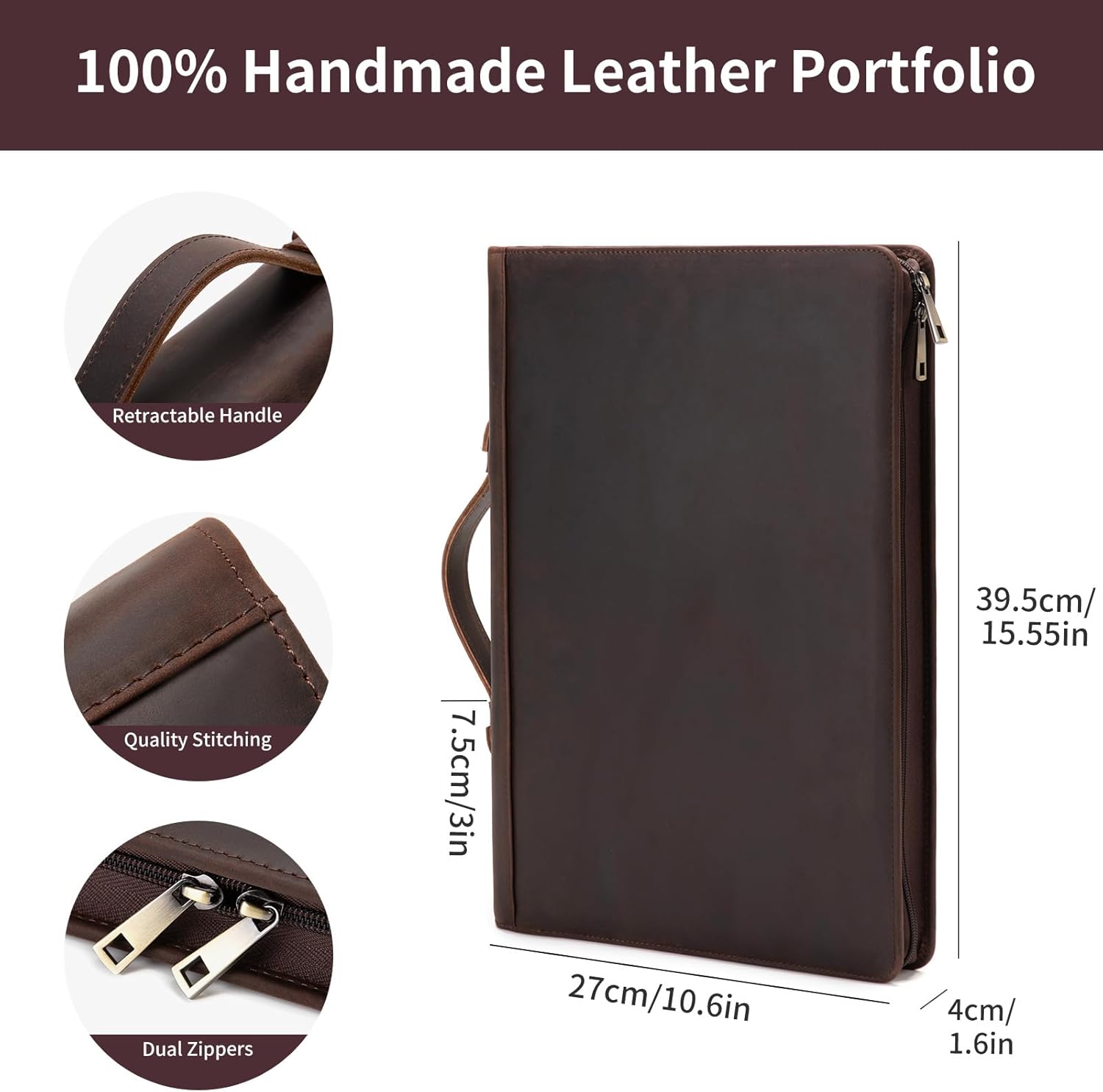 - Multi-Function 15" Laptop Portfolio: Feature a dedicated double-layer pocket tailored to securely hold a 15" laptop. Within this specialized pocket, you'll find a large file sleeve, ideal for organizing important documents, while an inside YKK zipper pocket keeps smaller essentials safe and accessible. Furthermore, a medium open slot within the same pocket adds versatility, accommodating various items.