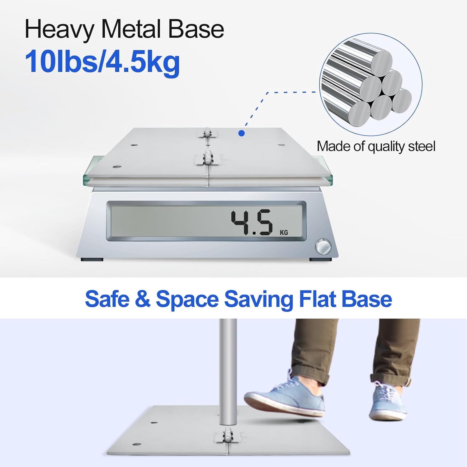- 【Heavy Metal Base】 The base is made of good quality iron. And the large contact area as well as the weight ensure the stable support. Meanwhile, the flat base can avoid the exposure of stand