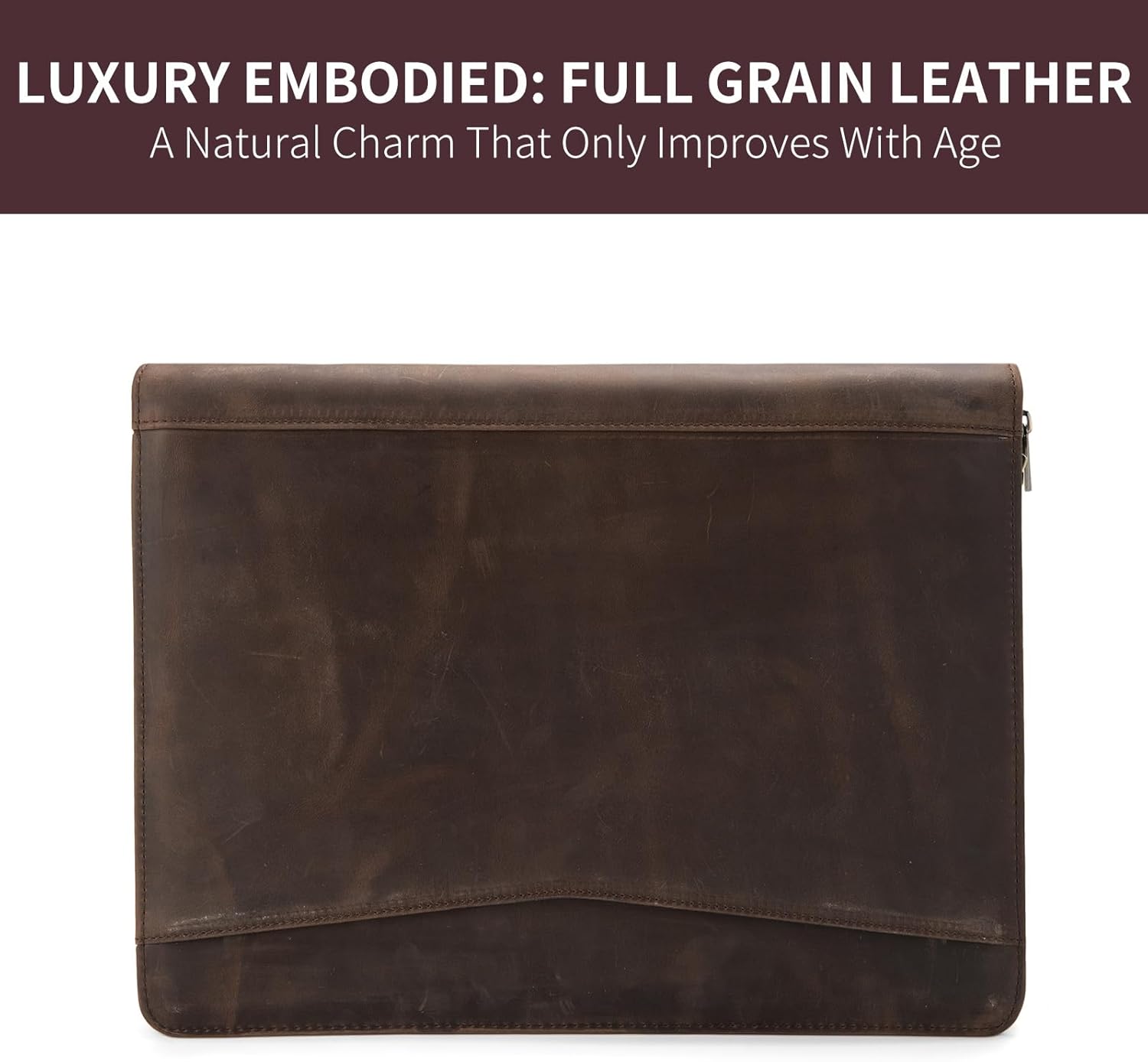- Crazy Horse Leather: The characteristic of Crazy Horse leather is that it is easy to leave scratches, which makes it unique. The leather's surface has a two-tone effect, where the color lightens when it is scratched or rubbed, creating a distressed and weathered appearance over time. Our handmade full-grain leather portfolio exudes sophistication, with its rich and natural patina, making it a classic and luxurious accessory for professionals.