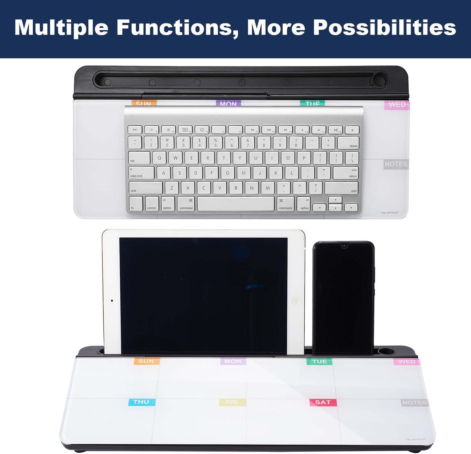 - BEST GIFT IDEA: Best Gift as a tabletop whiteboard, note taking supplies, desk to do list notepad, keyboard stand, desk organizer, memo board for Your Office, Home or Classroom! All ages will like this premium small white board. The clear desk pad brings them better organization, teaching and learning without paper large wasting.