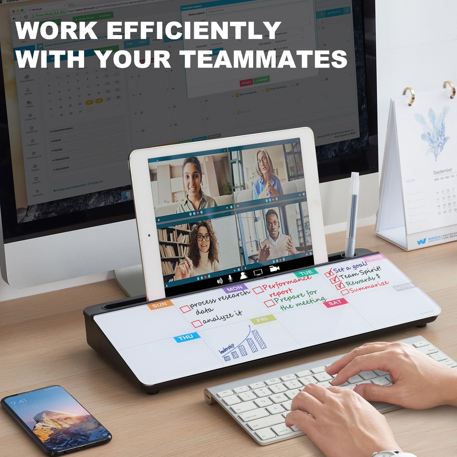 - PERFECT DESIGN: Quickly record your weekly schedule-Sunday through Monday. Maximize your work area. The desktop weekly calendar whiteboard is designed to sit perfectly between a keyboard and monitor and is slope angled for comfortable reading and writing, or typing when you are using it as a keyboard stand.