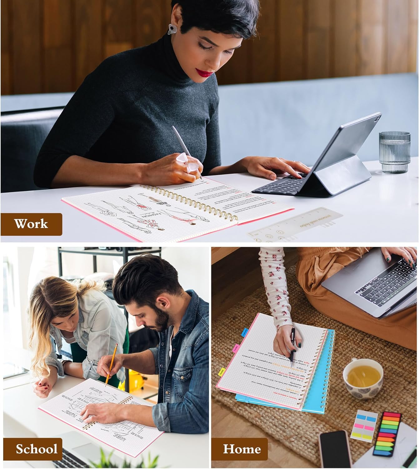 - 【Strong Spiral Metal Twin-Wire】 Our spiral graph paper notebook has a sturdy gold-color double wire spiral with easy-to-turn pages and keeps pages attached reliably, while still staying flat when opened, which reading more convenient and taking notes more efficient. Spiral grid notebook easy to tear-off and fold over, as well as flip the cover back, giving you a better writing experience. Golden spiral bound adds aesthetic matching, it’s the perfect big notebook for journaling.