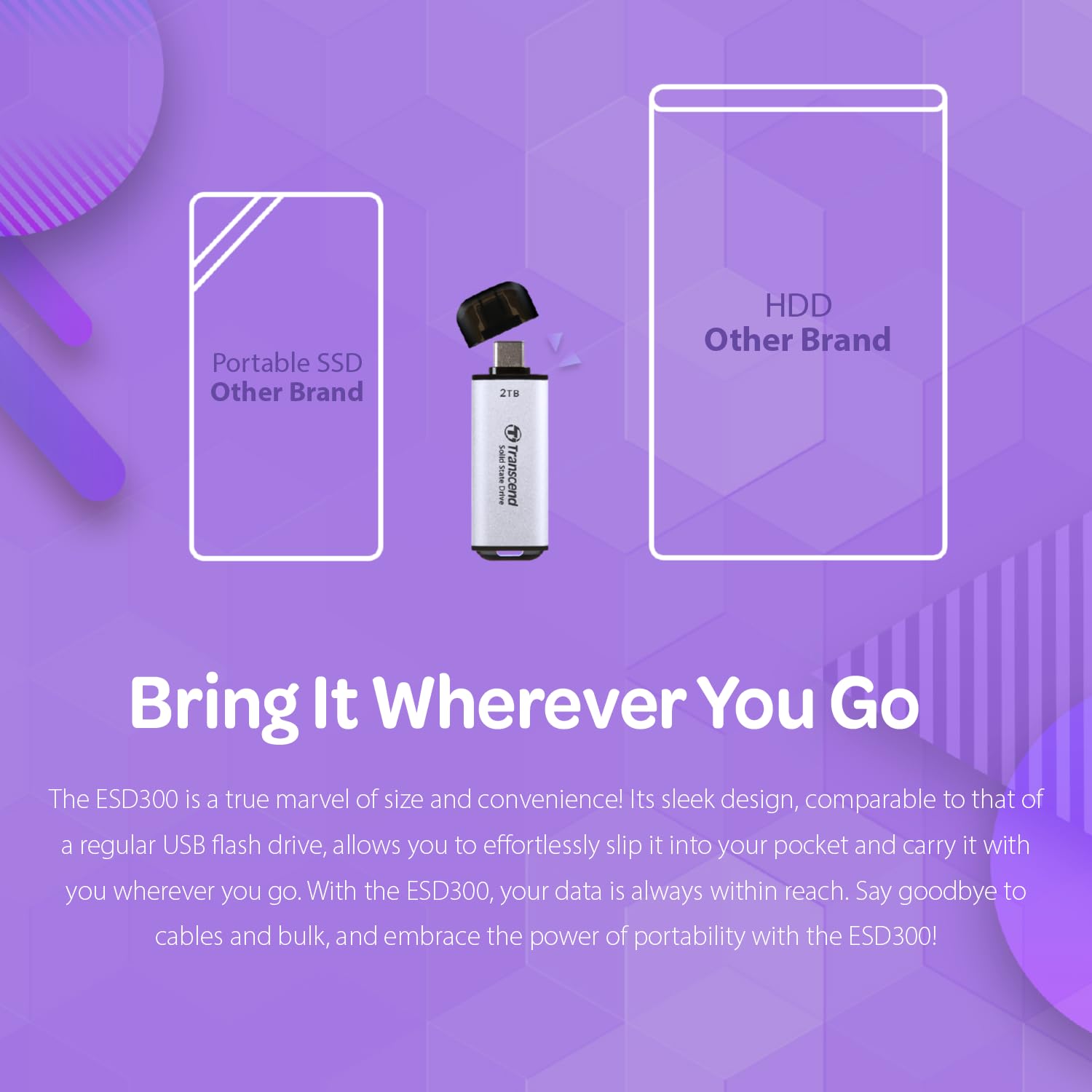 - Compact and Portable Design: Comparable in size to a standard USB flash drive, the ESD300 is lightweight and easily fits into your pocket, making it convenient for on-the-go data storage.