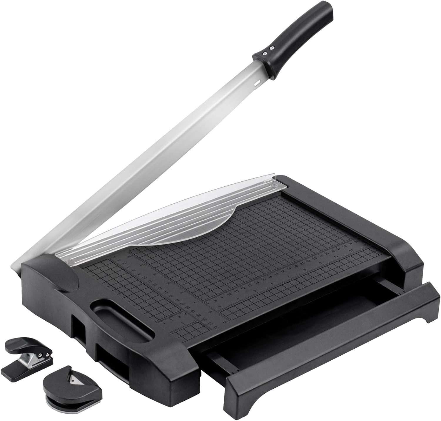 - Cutting Accessories Bonus : The package comes with corner rounder and paper hole puncher which help to perfect the paper work; The base was designed a special slot for storing them that will better prevent missing tools