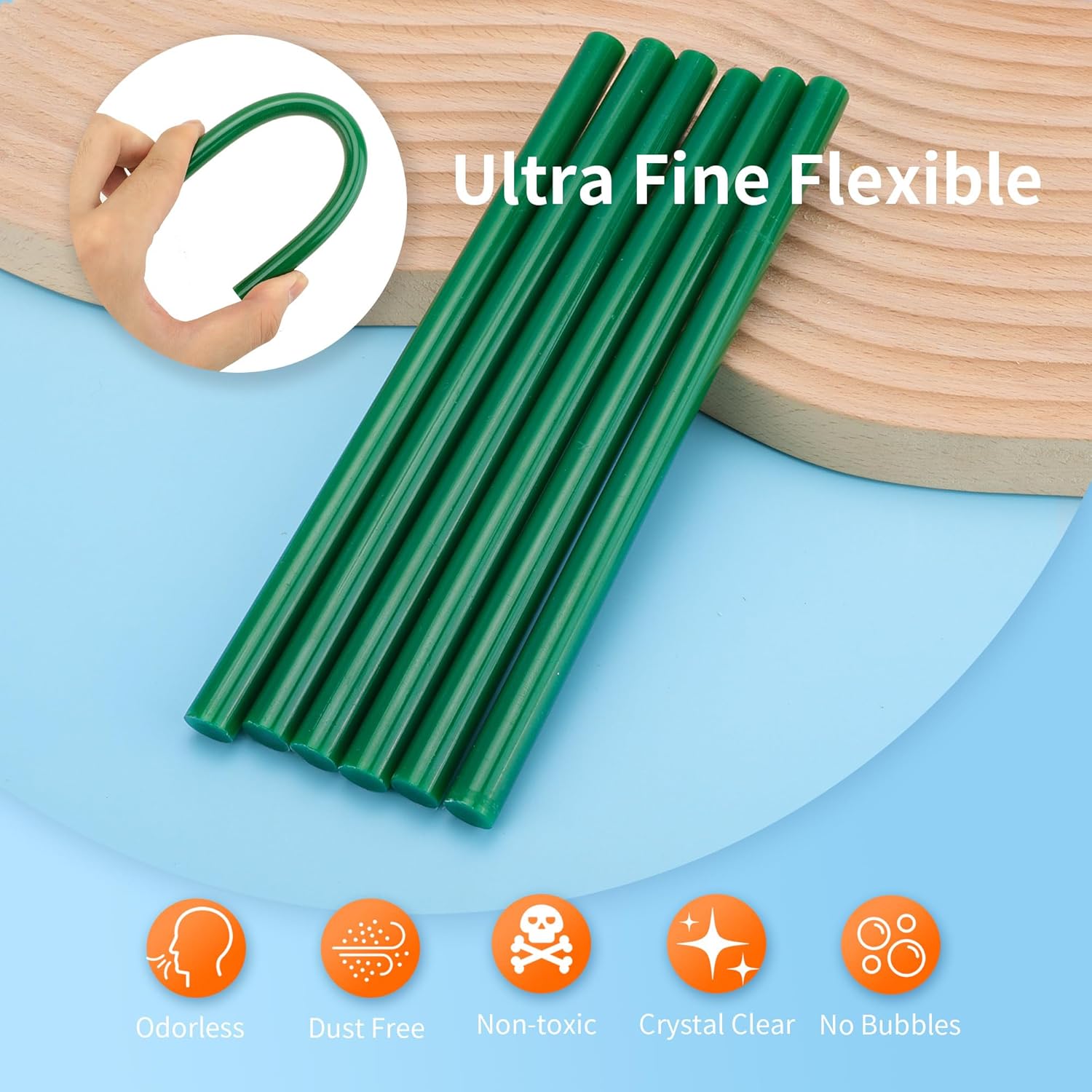 - 【High quality】Hot Melt Adhesive Glue Sticks Standard Size are made from quality resin EVA, no odor, strong adhesive, toughnes , with good purity and luster color. Can be used on wood, fabric, accessory, felt, plastic, ceramic, foam, leather,lace, ribbon and glass metal etc.