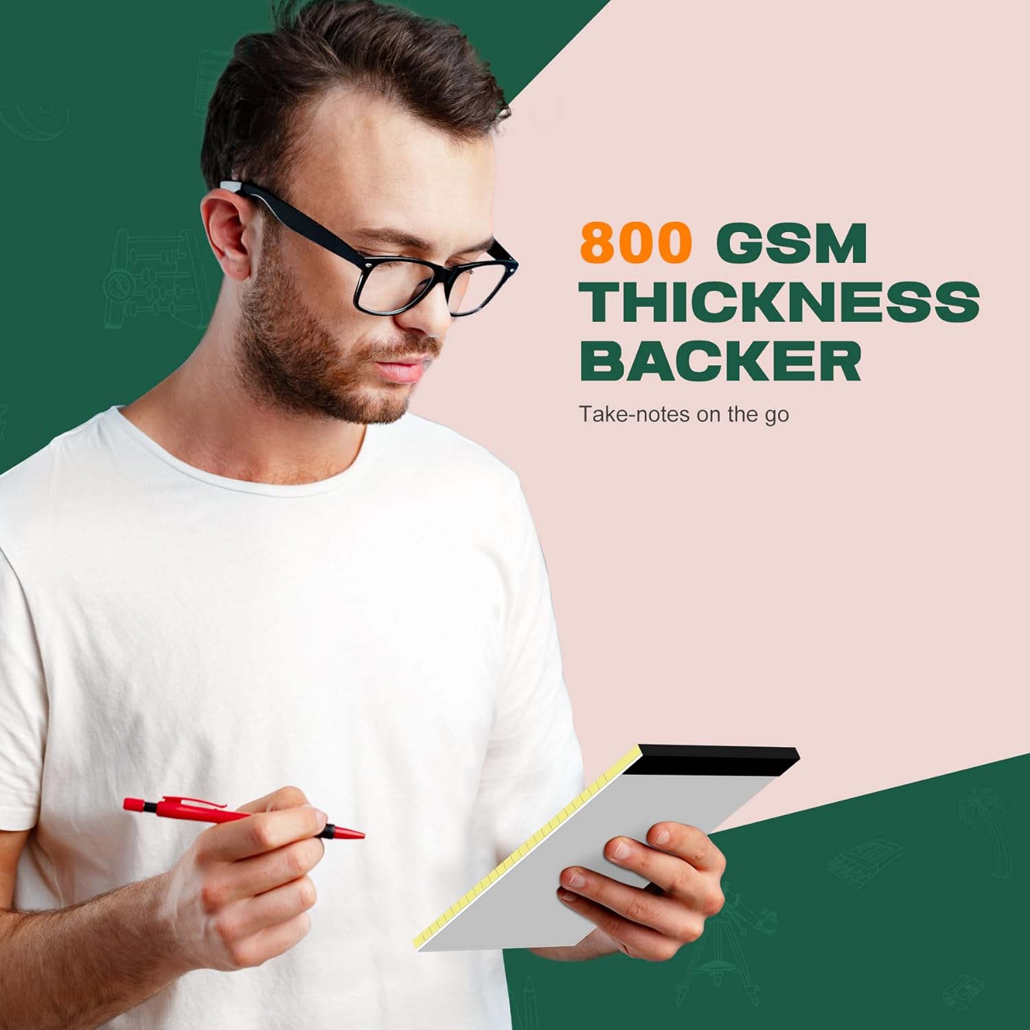 - ăSturdy Backă:An extra-strong back provides firm writing support. The legal pad 5x8 feature a sturdy back that provides extra support and stability when writing. Organize your notes/lists/reminders neatly and clearly. The hardback ensures your legal paper rests flat, so you can focus on your work without worrying about your writing surface. Perfect for daily professional notes, and to-do, whether for work, school, or personal use, these compact legal sheets will make your life easier.