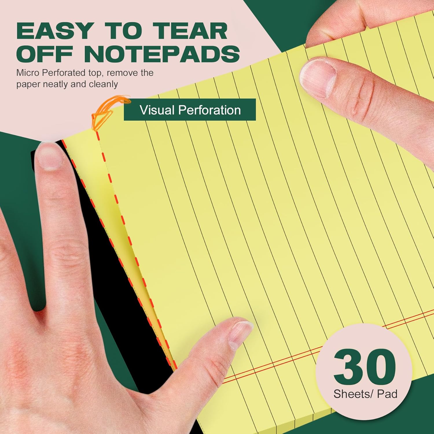 Yellow Legal Pads 5x8 Notepads, 12 Pack Small Note Pads 5x8 College Ruled Perforated Memo Pad for Work, Narrow Ruled Lined Writing Pads, 30 Sheets Per Pad, Mini Notepad for Office Home School