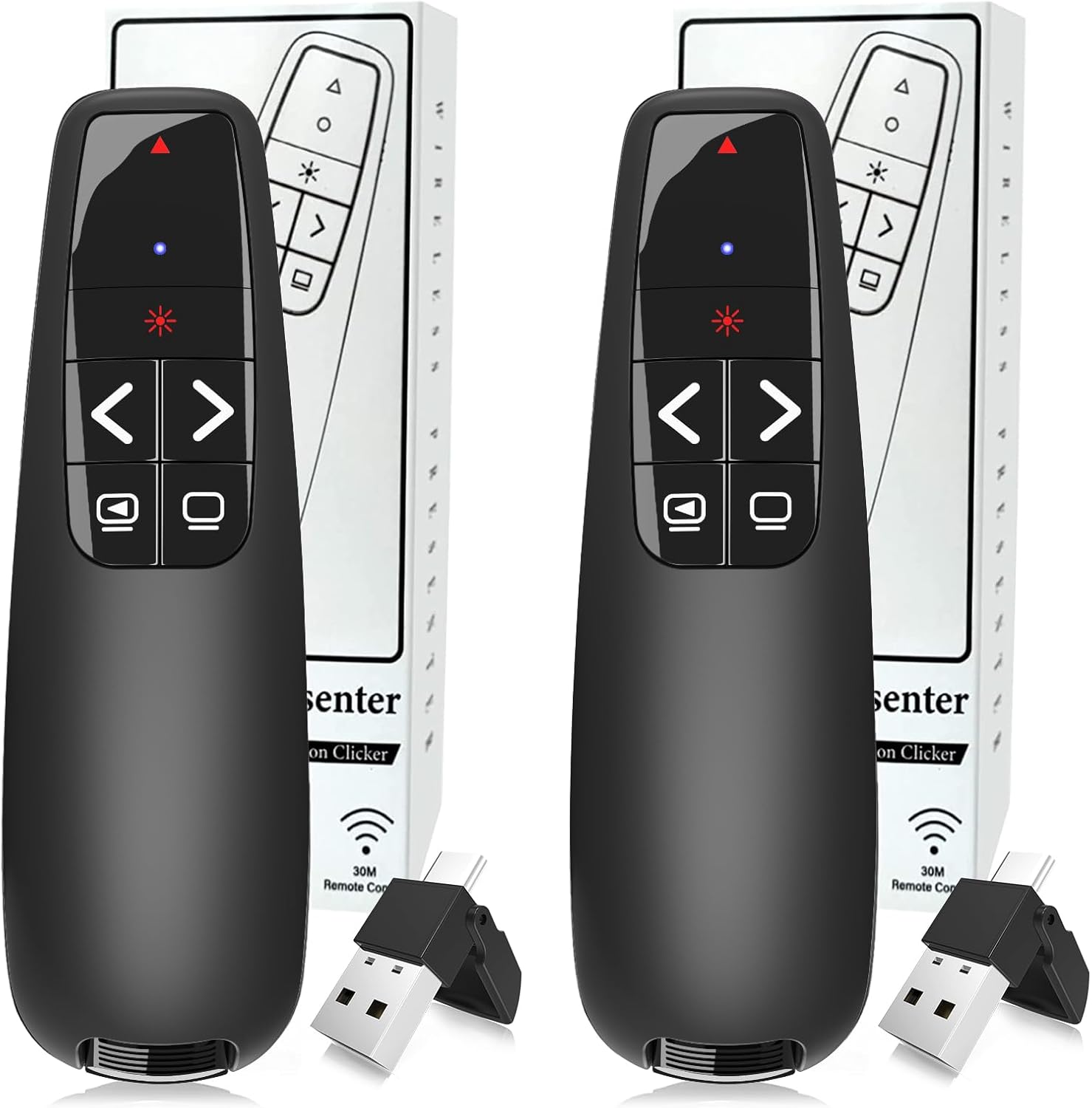 (2 Units) Wireless Presentation Clicker PowerPoint Presenter Remote: Clicker with Red Laser Pointer Long Range PPT Control -Power Point Google Slide Advancer for Mac Laptop PC Computer Keynote