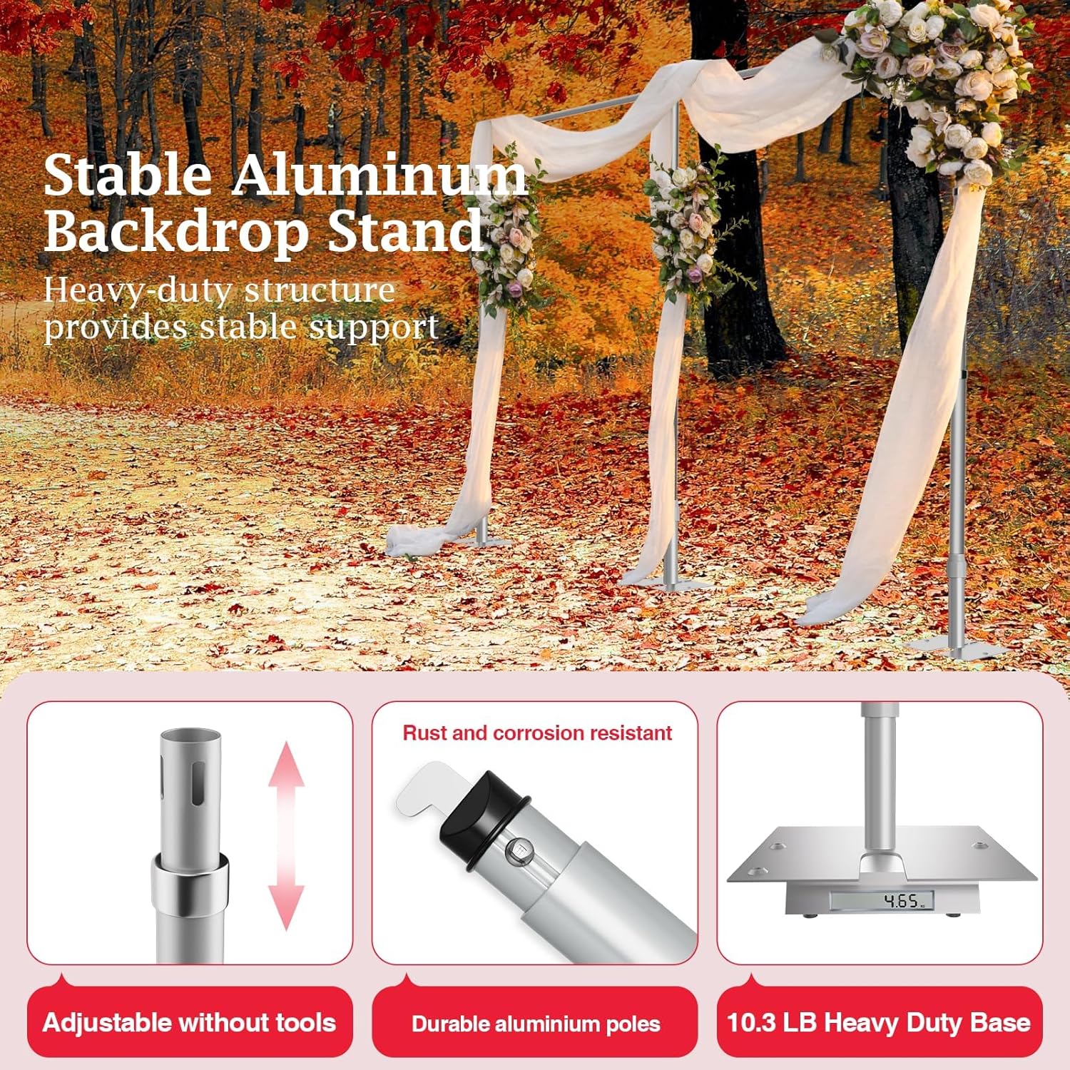 - 【 Wide Application】This decoration backdrop stand is perfectly suitable for weddings, parties, birthday, baby shower, photography, photo booths, banner stand backgrounds, business events and so on. You can hang drapes, balloons, string lights and flowers to make your backdrop stand amazing