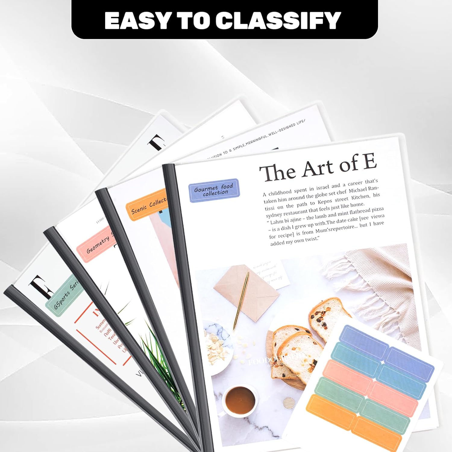 - Port folder size: Our report covers Size: 8.9in/22.6cm x 11.2in/28.5cm, perfect for A4 size and US letter size paper (11 x 8.5 inches). Our sliding bar is black with a 1cm wide back. No need for hole-punching and easy to load. We also come with 12pcs labeling stickers for easy sorting.