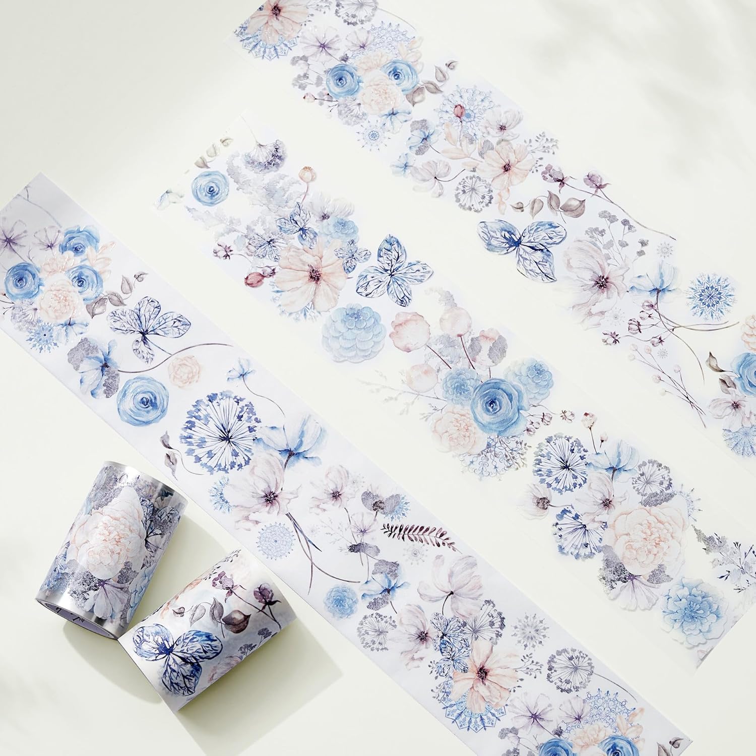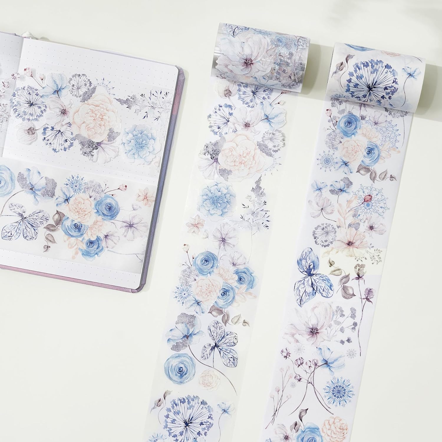 WT Frozen Wide PET Tape, Single Roll, Original Designs, Vintage Floral Decorative Tape, Transparent Adhesive Craft Tape for Journals, Scrapbooks, Bujo Planners, DIY Supplies, Holiday Gifts