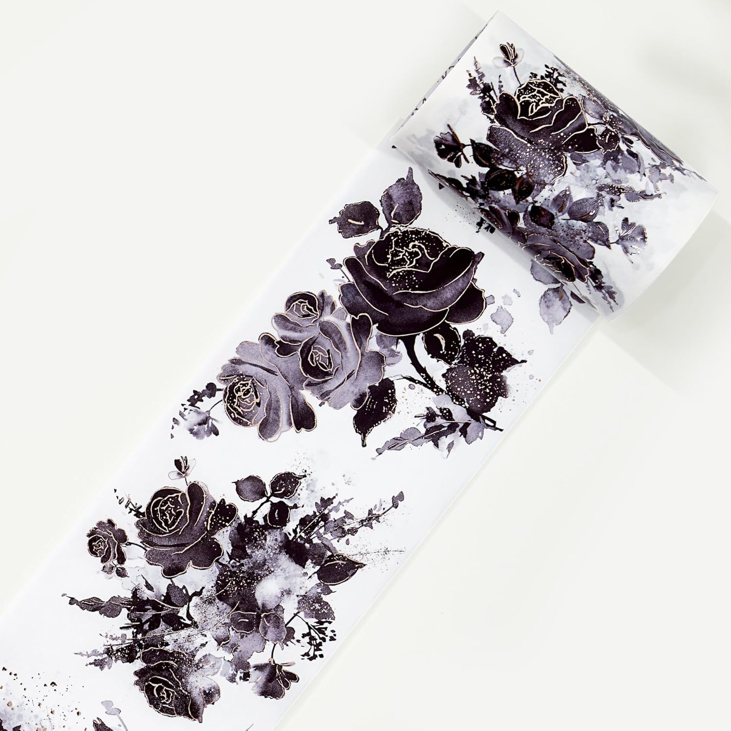 WT Rose Noir Wide Washi Tape Gilded, Single Roll, Original Designs, Black Flower Gold Foil Decors, Journal Scrapbook Bujo Planner DIY Crafts Supplies Gifts, Vintage Floral Adhesive Tape