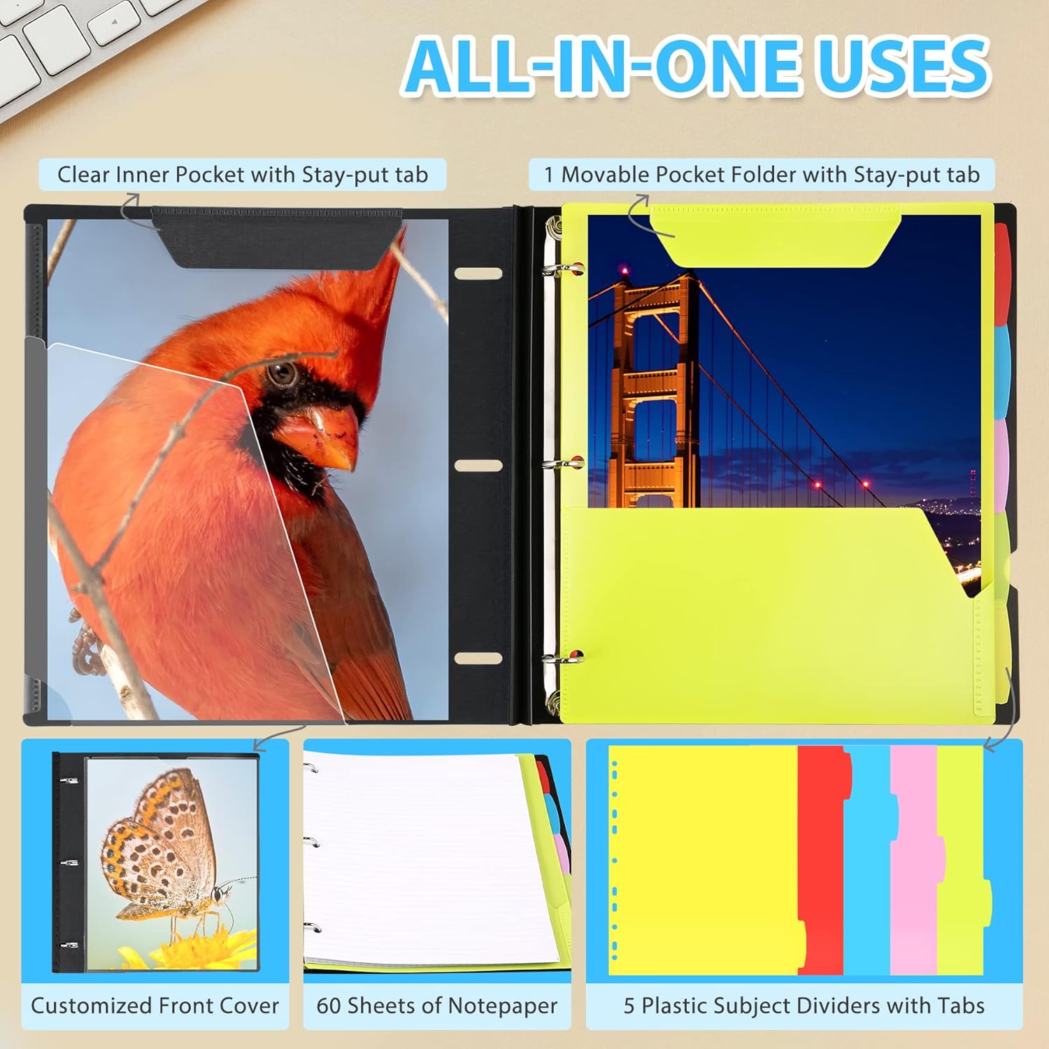 - Stay Organized, Stay Inspired: Customize your 3-ring binder’s cover, store notes in its secure clear pocket and movable folder (tabs stay put), sort projects with 5 labeled dividers, and jot ideas on 60 sheets (30 graph + 30 lined). No slips, no mess - this binder handles school, work, or creative hustle. Grab it, go, and conquer your day!