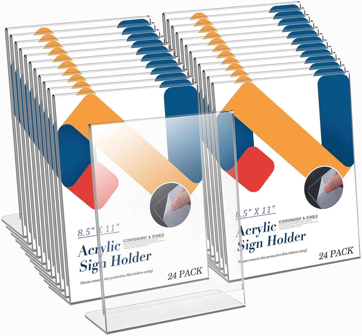 Relx Acrylic Sign Holder 8.5 x 11, Slant Back Display Stand, Clear Frames Plastic Sign Holder for Store, Restaurant (24 Pack)