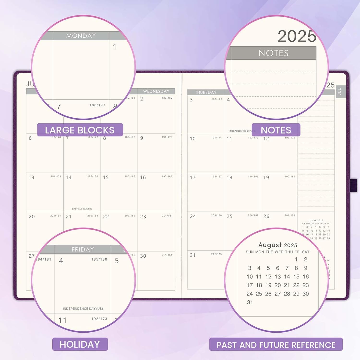 - MONTHLY MANAGEMENT - Each monthly spread contains an overview of the month and a notes section, remember upcoming plans at-large with the monthly view! Keep your special dates and dream vacations top of mind for your year. Moreover, this academic planner 2025-2026 has countdown, holidays, last and next months calendar on every monthly pages.