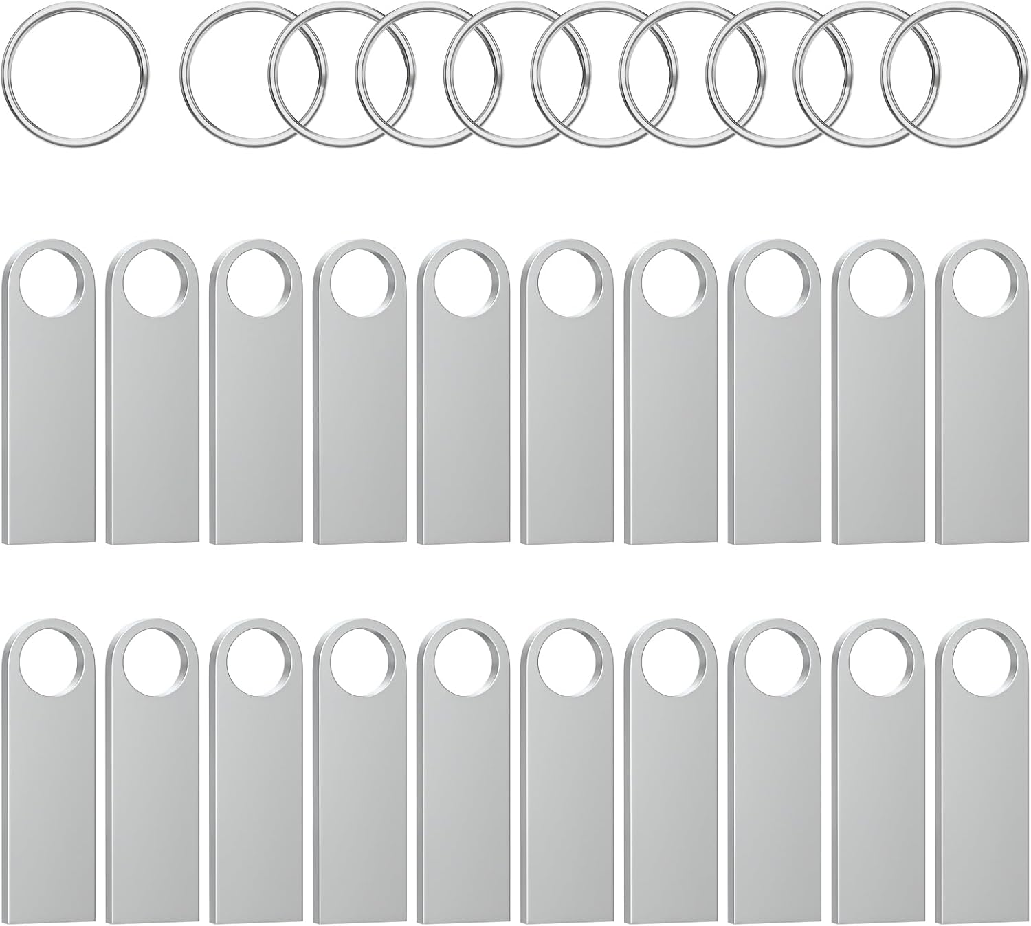 ABLAZE 1GB Flash Drive 20 Pack, Metal USB 2.0 Thumb Drives with Keychains USB Sticks Pendrives (Sliver)