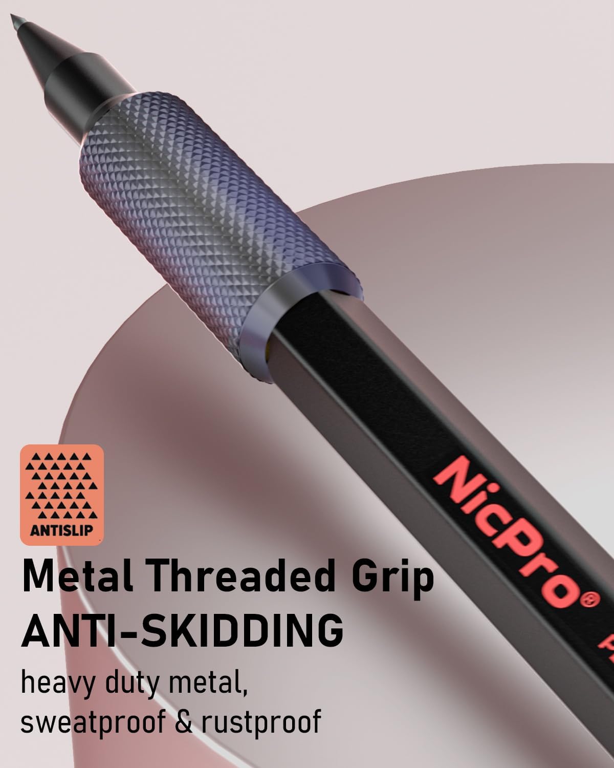 - 3.Metal Threaded Anti-skidding Grip: anti-rust, sweat and water resistance. It is hard to be broken and drop resistant. Strong metal clip won’t break,professional school / office / design supplies. Extra 2pcs lead sharpener are provided for the 2.0 lead to keep the fine point as they dull.