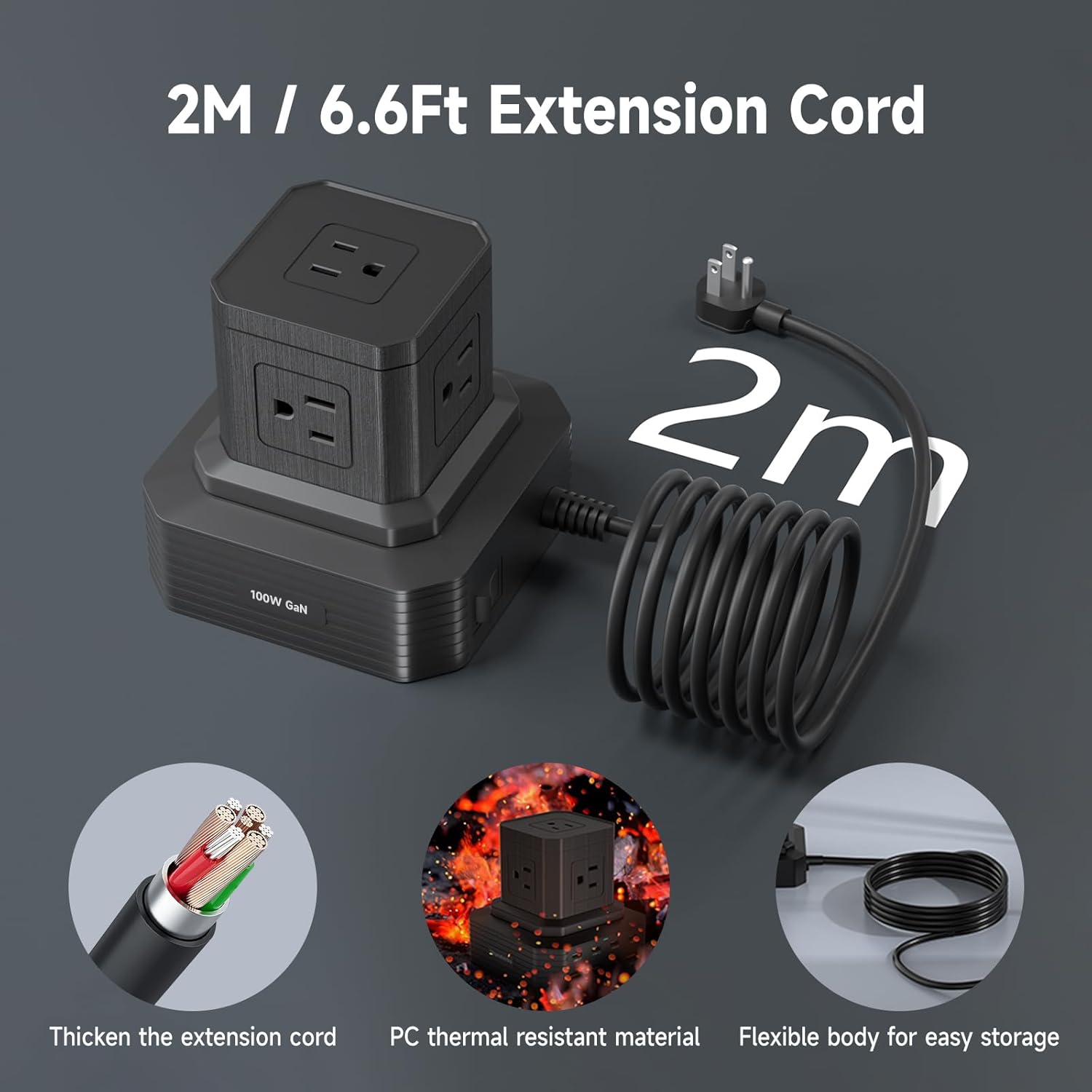 - 【Widely Use】This charging station supports fast charging for multiple devices, USB ports fast charging for laptops, mobile phones, smart watches, earbuds, game console etc. AC ports can used for PC, TV, printers, lamp, speakers, rice cookers, printer and other devices