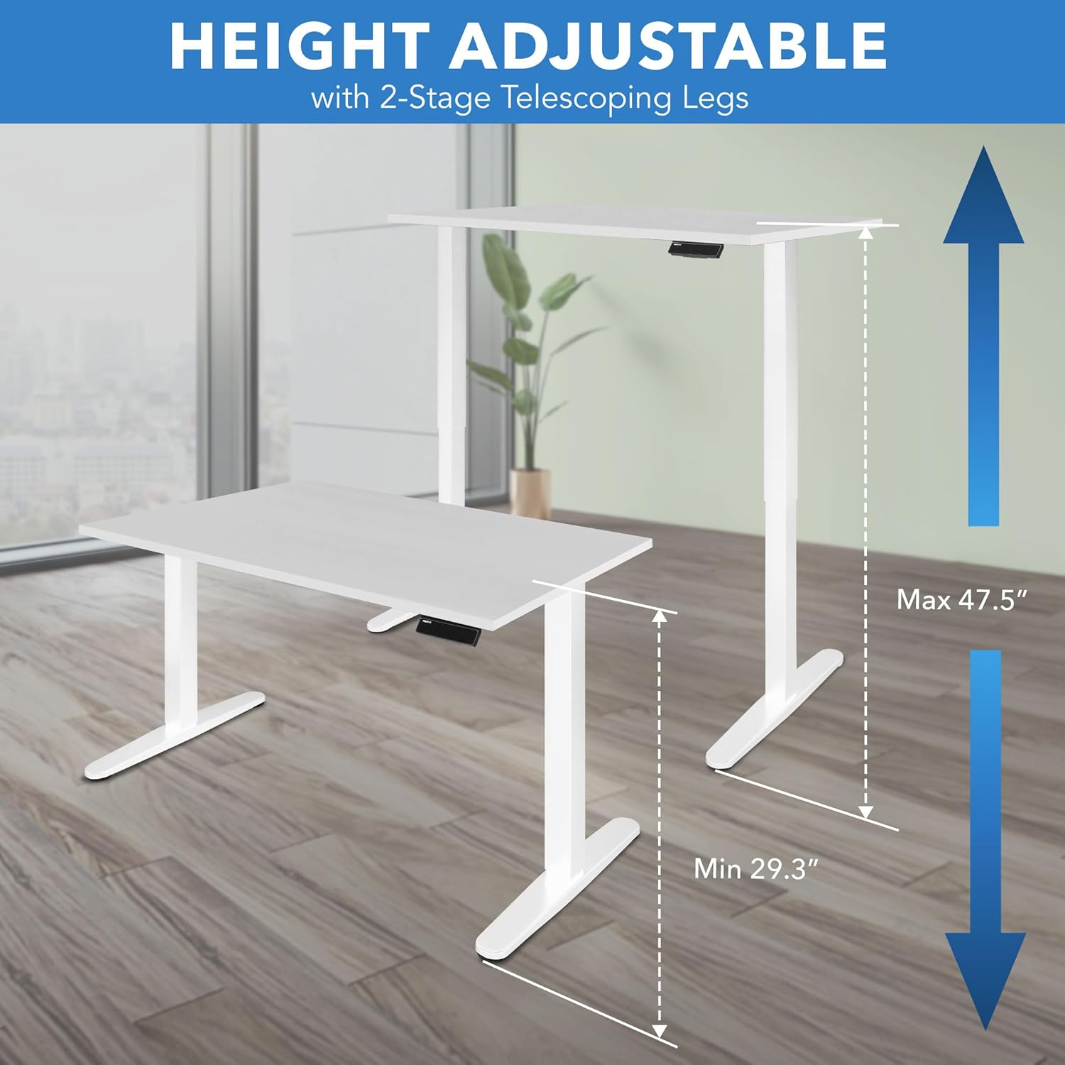 - EFFORTLESS HEIGHT ADJUSTMENT: Experience seamless transitions between sitting and standing with the touch of a button, thanks to the efficient single-motor design of this desk frame. Our adjustable height desk frame provides hassle-free height adjustment, ranging from 28.3" to 47.2".