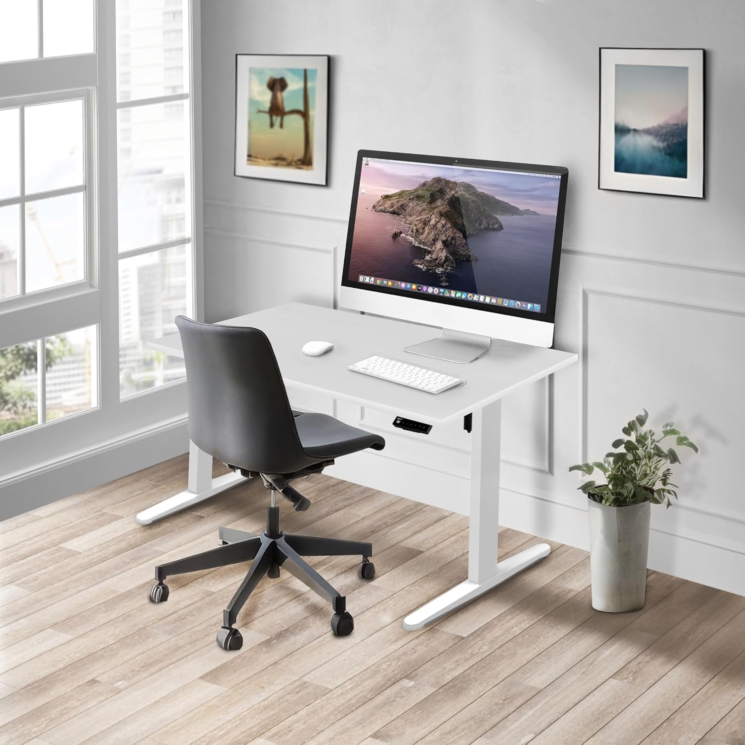Mount-It! Motorized Sit Stand Adjustable Height Desk Frame with 48" Tabletop - Ergonomic Single Motor Adjustable Standing Height Table, Desktop Rising Up to 47.2" Memory Control, Large White Desk
