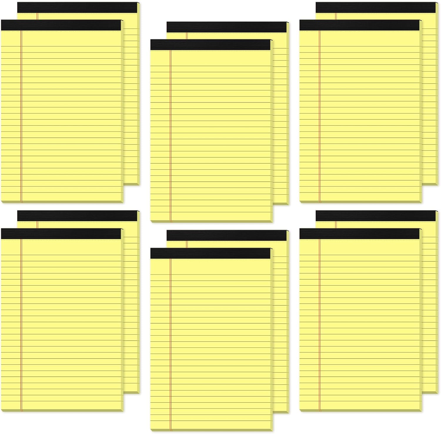 - [KEEP NOTES SECURE]: Each yellow writing pads 5x8 has black top bindings. The 5x8 notepad perforated top edge allows for easily and neatly removing individual sheets of paper. Yellow pad 5x8 has sturdy header and bindings keep the pages of your crucial notes protected, yellow lined paper pads won't fall apart under pressure like some lesser notepads. Legal pad features a cardboard backing for extra support when you writing or taking note, legal pad 5x8 perfect for writing on the go.