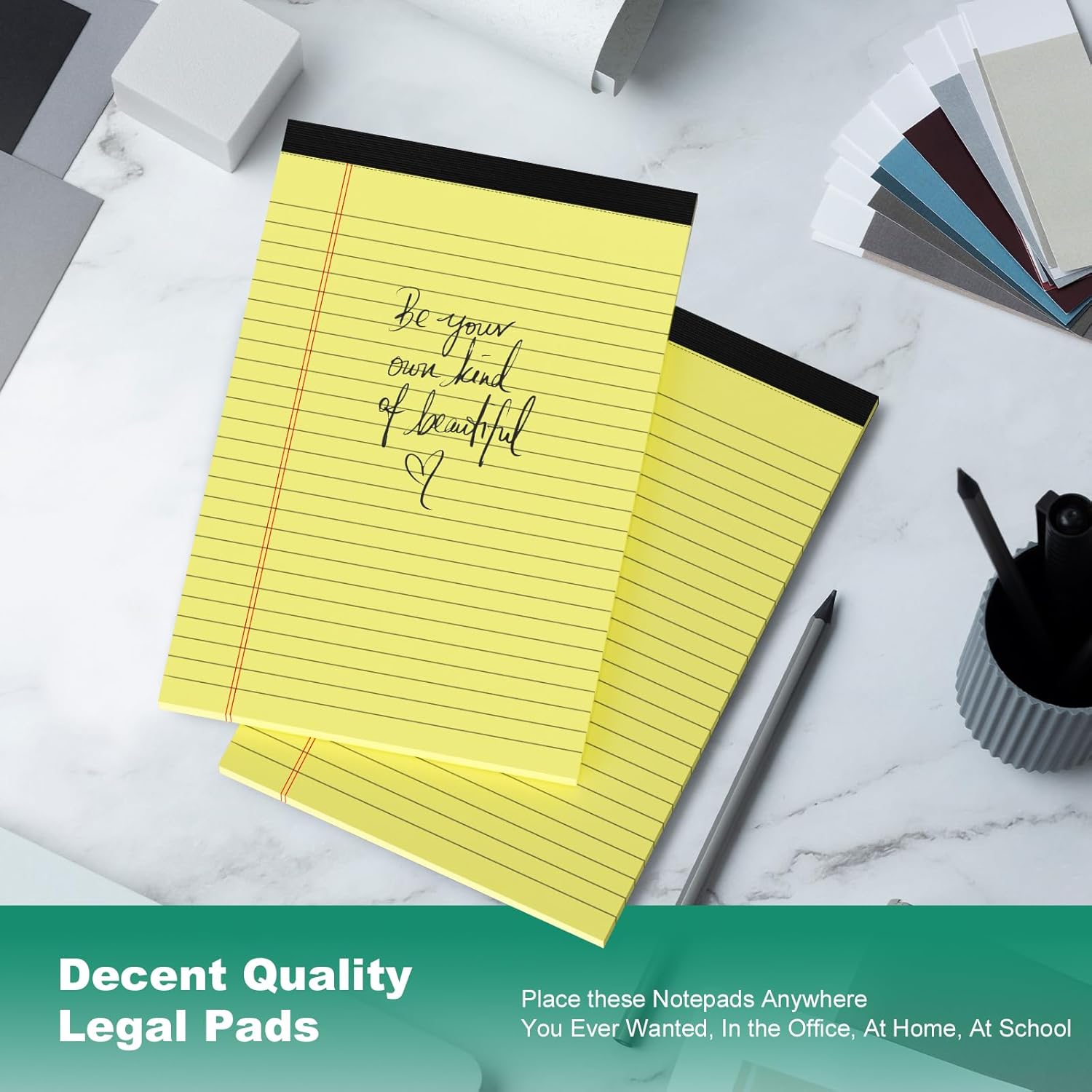- 【Premium Quality Paper】The yellow legal pads 5x8 are made of high quality paper material that prevents ink from seeping between the pages, easy to write or draw on, neutral and ballpoint pens writes smoothly and effortlessly on the notepad. Note pads 5x8 features a cardboard backing for extra support when you writing or taking note, legal pad 5x8 perfect for writing on the go.
