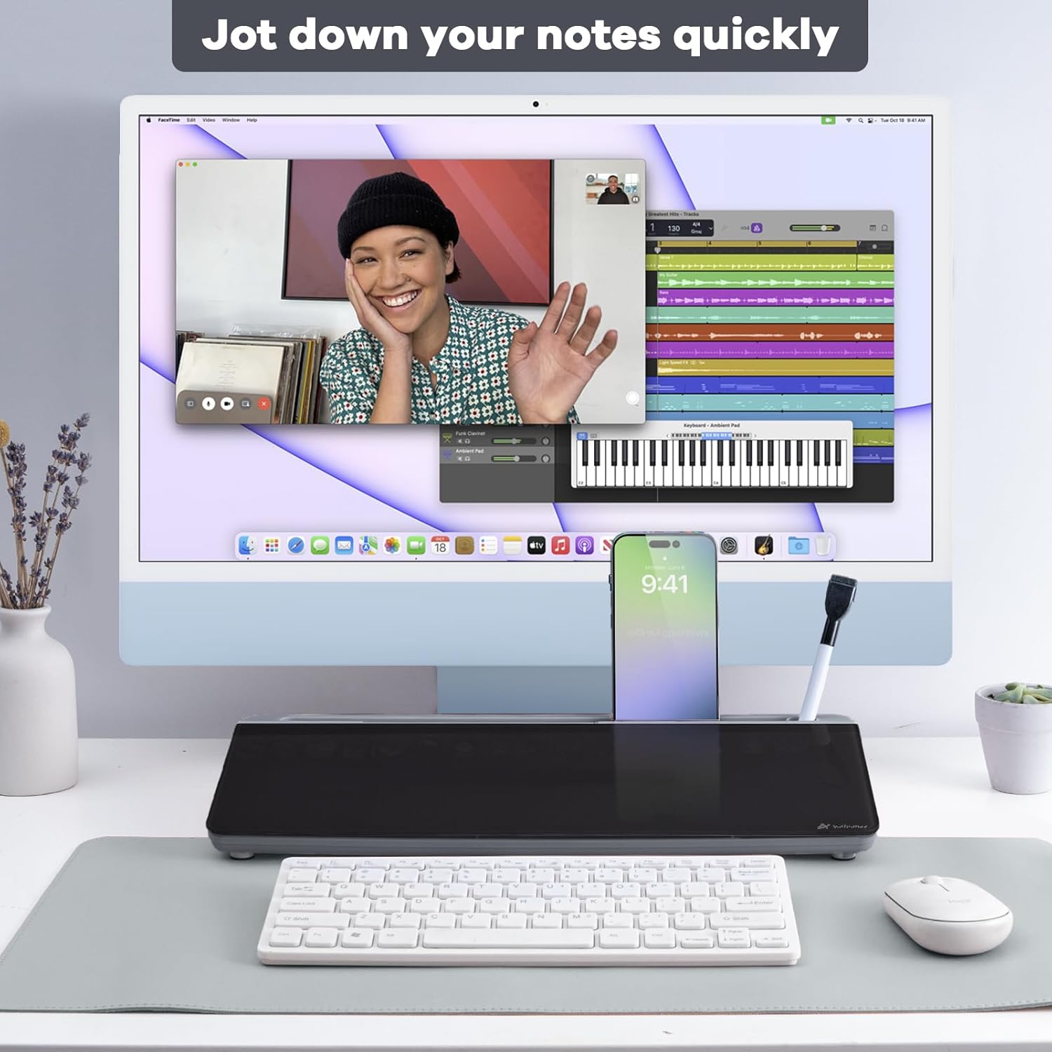- Desktop Memo: Sitting compactly between your monitor and keyboard, this small desktop glass whiteboard makes it easy for you to jot down quickly memos like to dos, reminders, schedules, phone numbers and brainstorm ideas during work, zoom meetings, phone calls and online class.