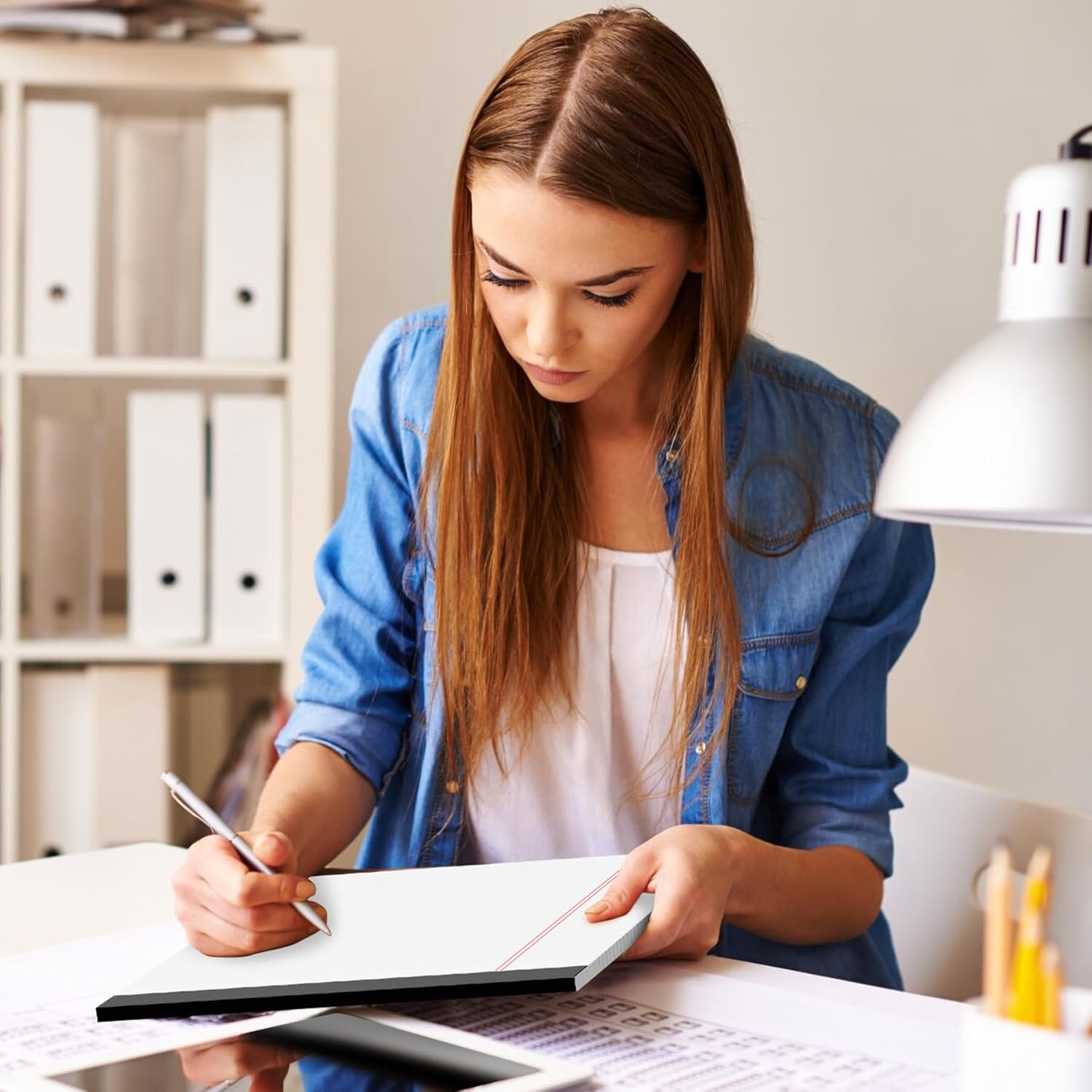 - 【Resista Cardboard Backing】:White Notepads 8.5 x 11 letter size lined paper feature a sturdy backing that offers support and stability. The sturdy cardboard base allows you to take notes while on your lap or standing in a hurry, perfect for holding a pen and writing in various environments. With our notepad, you can write comfortably, no matter where you are. The hardback backing also protects your pads from wear and tear. It will be perfect cater to people with professions to manage the daily